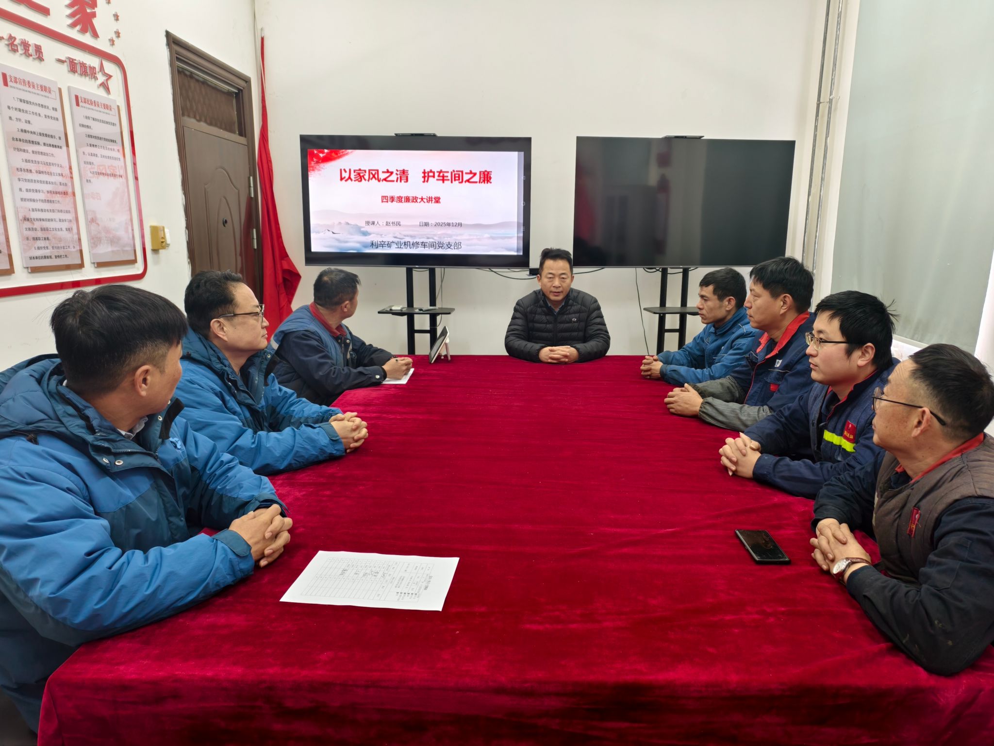 为进一步筑牢党员干部廉洁自律防线,深化党风廉政建设工作,12月30日,利辛矿业机修车间联系点领导深入车间开展了以《以家风之清,护车间之廉》为主题的四季度廉政大讲堂活动。