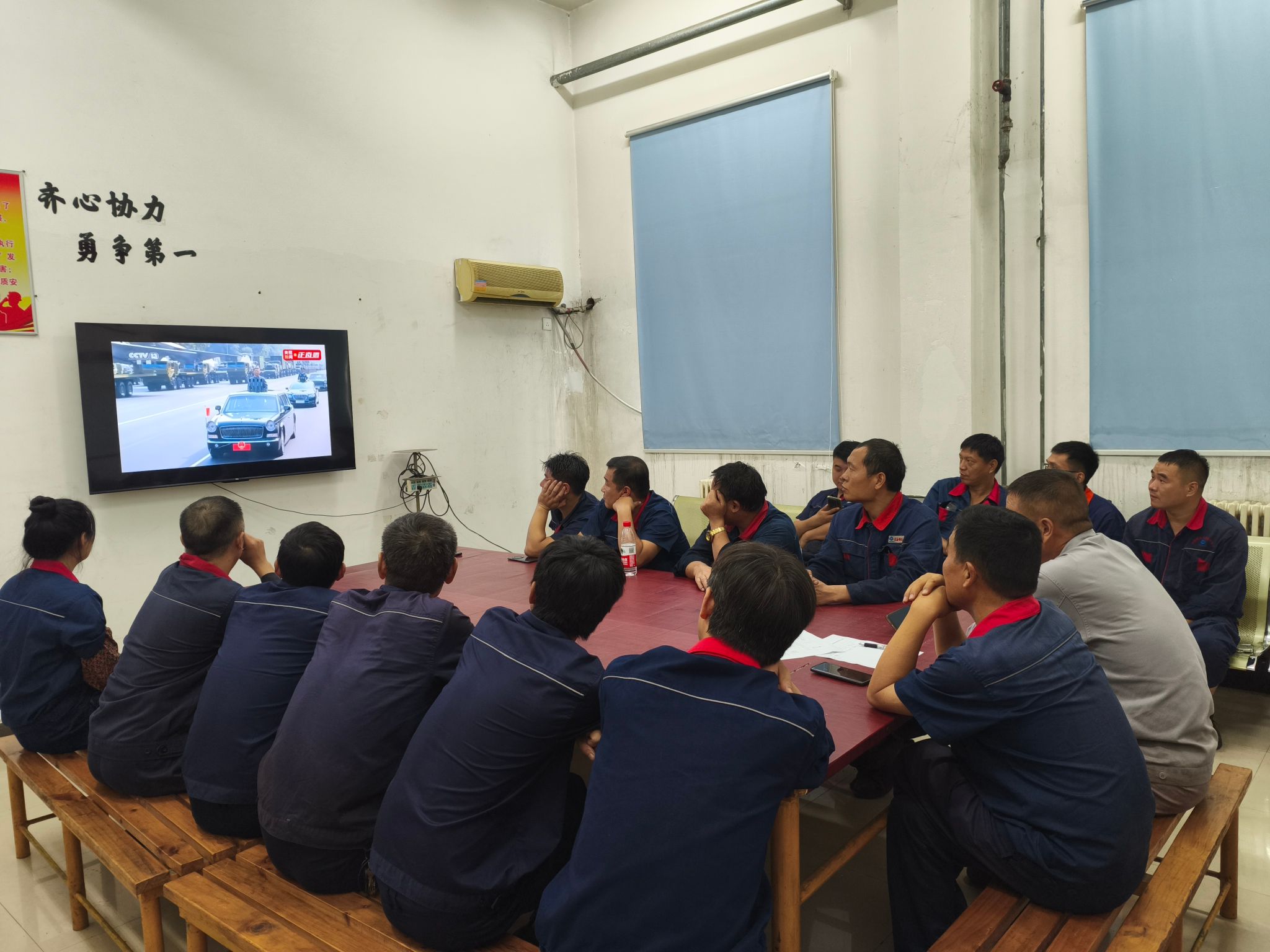 受阅方队铿锵迈步、先进装备震撼亮相。屏幕前掌声不断。青年职工赵健难掩激动:“军人的严谨让我深受触动,我们机修设备也要像他们一样细致,守住生产‘命脉’!”党员王涛师傅则感慨:“从抗战艰难到如今国家的强盛,我们更要在岗位上传承好不屈不挠、勇夺胜利的抗战精神。”
