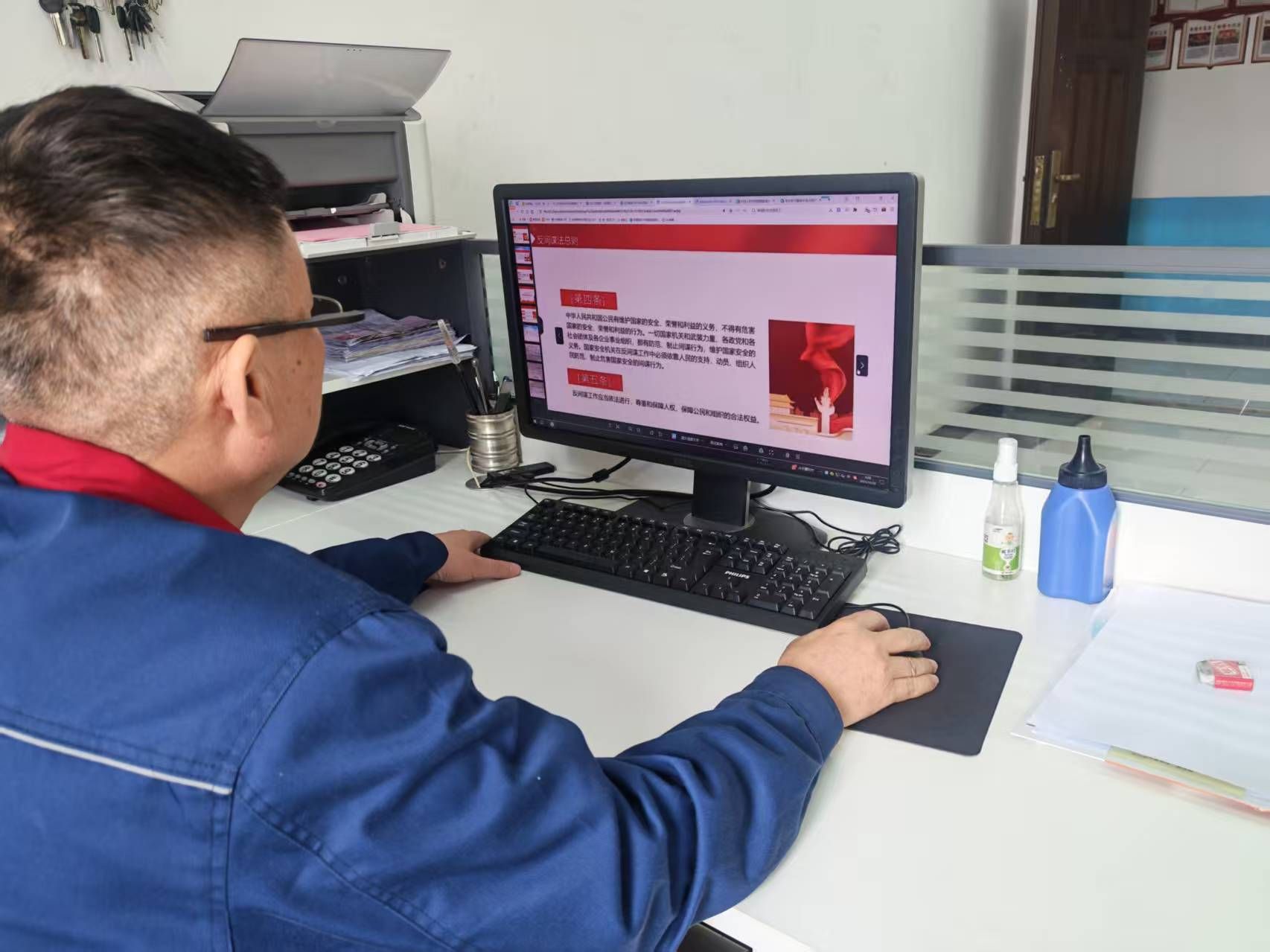 在南区会议室专题宣讲现场,支部书记赵平伟通过图文并茂的PPT、触目惊心的警示视频开展专题宣讲,着重解读《国家安全法》的核心内容,结合全国范围内数据泄露、信息失密的真实案例,深入剖析此类行为对国家利益、企业发展、个人前途造成的严重后果。国防教育纪录片在屏幕上循环播放,从抗战时期军民浴血奋战的峥嵘岁月,到新时代国防力量跨越式发展的辉煌成就,从边境卫士的风雪守边的默默坚守,到军工科技的迅猛发展,鲜活的画面使职工们深切领悟到“国无防不立,民无防不安”的深刻内涵。