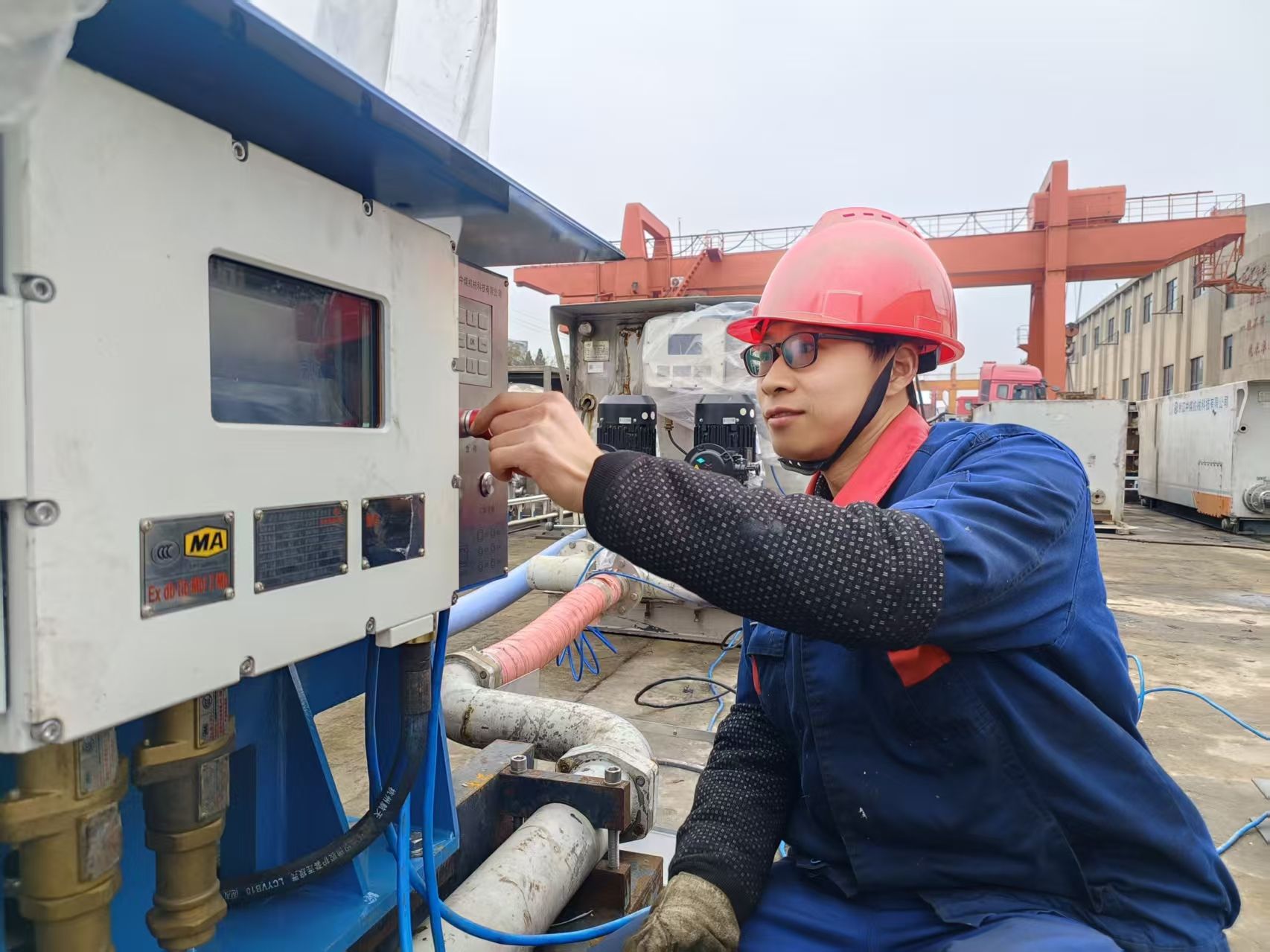 泵修班长李守群则带领葛成云等成员专攻液压系统难题。低温让液压油流动性变差,密封件更换难度陡增。他们先对系统预热处理,再用保温布包裹关键部件。在徒手拆卸老旧密封件时,手套上沾满油污与冰霜,大家也都毫不在意。为保证进度,团队人员加班加点更换适配密封件,并严格落实安装精度与润滑防护,并成功解决了泵站的液压泄漏问题。