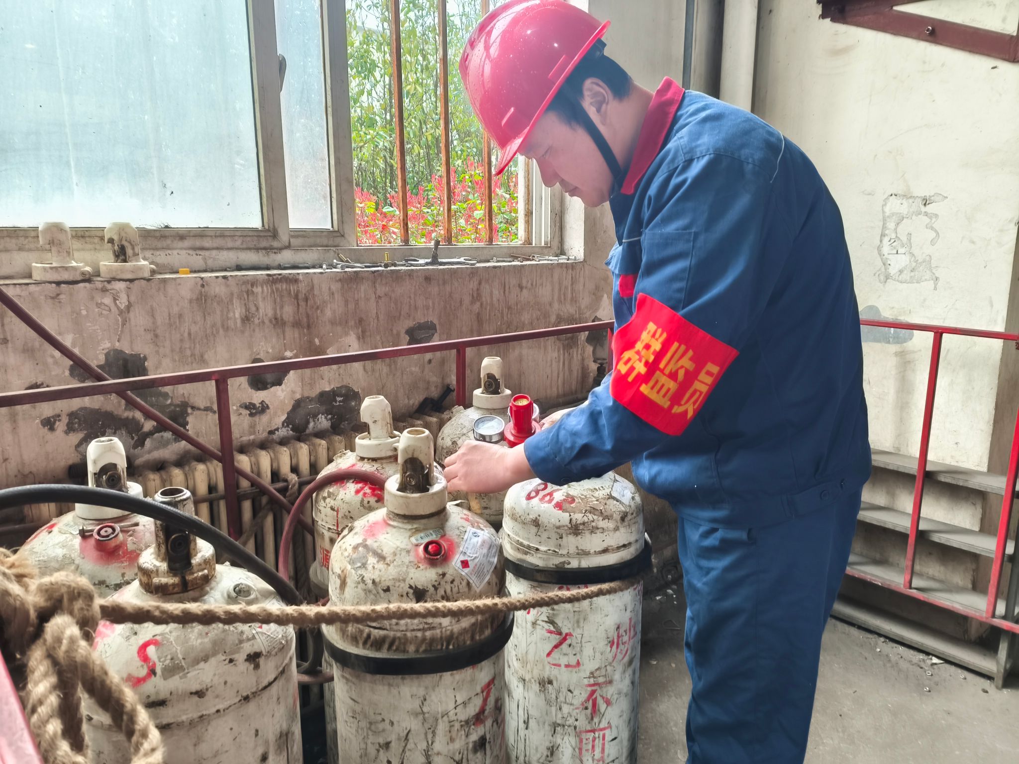 “安全面前无小事”,车间群监员黄傲按照检查内容和检查要求开展了深入细致的排查。在检查过程中,他敏锐地察觉到铆焊作业组使用的氧气带与割枪接口处有一丝细微的裂纹。作为熟悉铆焊业务的老职工,他十分清楚,虽是微小的裂纹,但是在高压气体的冲击下,随时可能发生泄漏,引发安全事故。