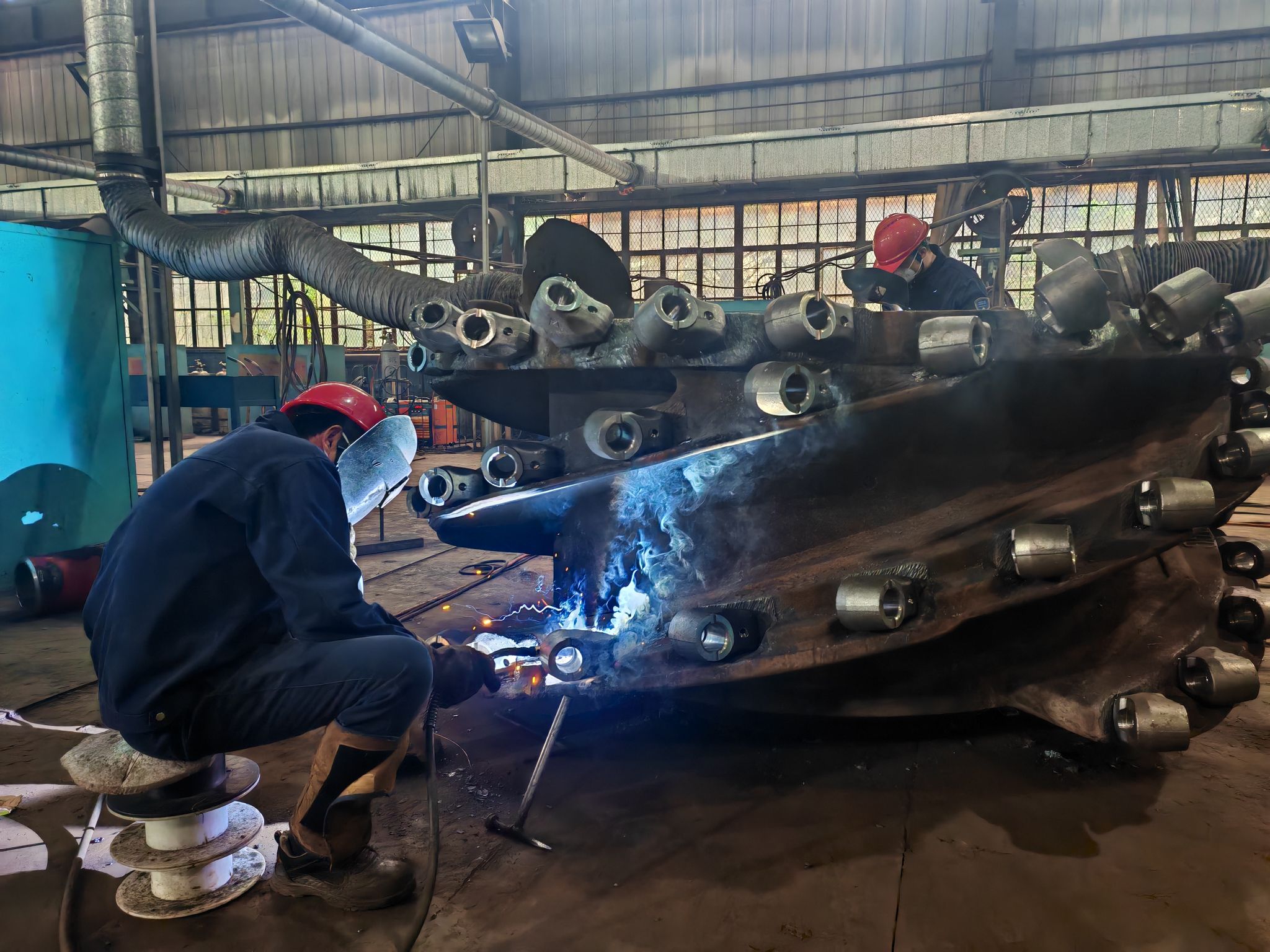 关键的焊接环节,是对焊工技术与耐力的双重考验,“滋啦——滋啦——”伴随着焊接声,耀眼的弧光瞬间照亮了焊工的脸庞。他们手持焊枪,稳稳控制着焊接速度与熔深,手腕微微转动,熔化后的焊丝均匀地填充在焊缝处,一层压一层,均匀光滑,如鱼鳞般规整美观。