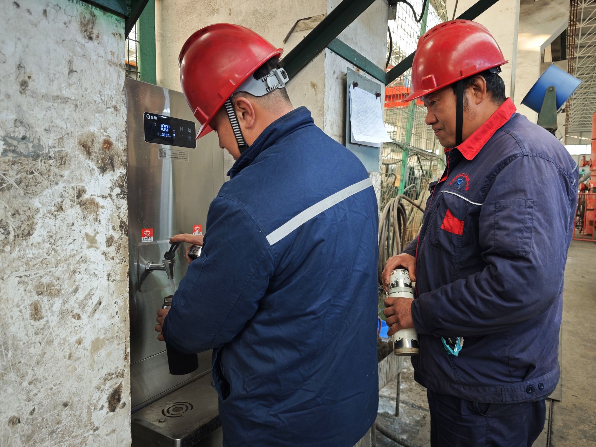围绕职工衣食住行等日常需求,车间着力优化后勤保障服务:一是增设洗衣机,党支部精准对接职工需求,快速推进设施完善,在东、西区场地划定专属洗衣区,购置大容量洗衣机及晾晒设施,彻底解决职工“洗衣难、晾衣难”问题。二是针对夏季露天作业高温酷热难题,支部精准落实民生保障举措,在露天作业点搭建6处临时遮阳棚,配备可移动遮阳伞,全方位筑牢露天作业“清凉屏障”,有效降低高温作业风险,切实保障职工身体健康与作业安全,让一线职工在炎炎夏日感受到车间关怀,全力护航夏季生产平稳有序推进。三是夏季高温期间,常态化开展“送清凉”活动。精准对接一线作业需求,定期为岗位职工配送盐汽水、藿香正气水、清凉油等防暑物资,累计发放物资超200份,切实缓解高温作业不适,传递组织关怀,提振职工干事热情,全力保障夏季安全生产持续稳定。四是聚焦职工日常饮水需求,积极推进净水设备安装工作,让每一位职工都能喝上安全水、放心水。