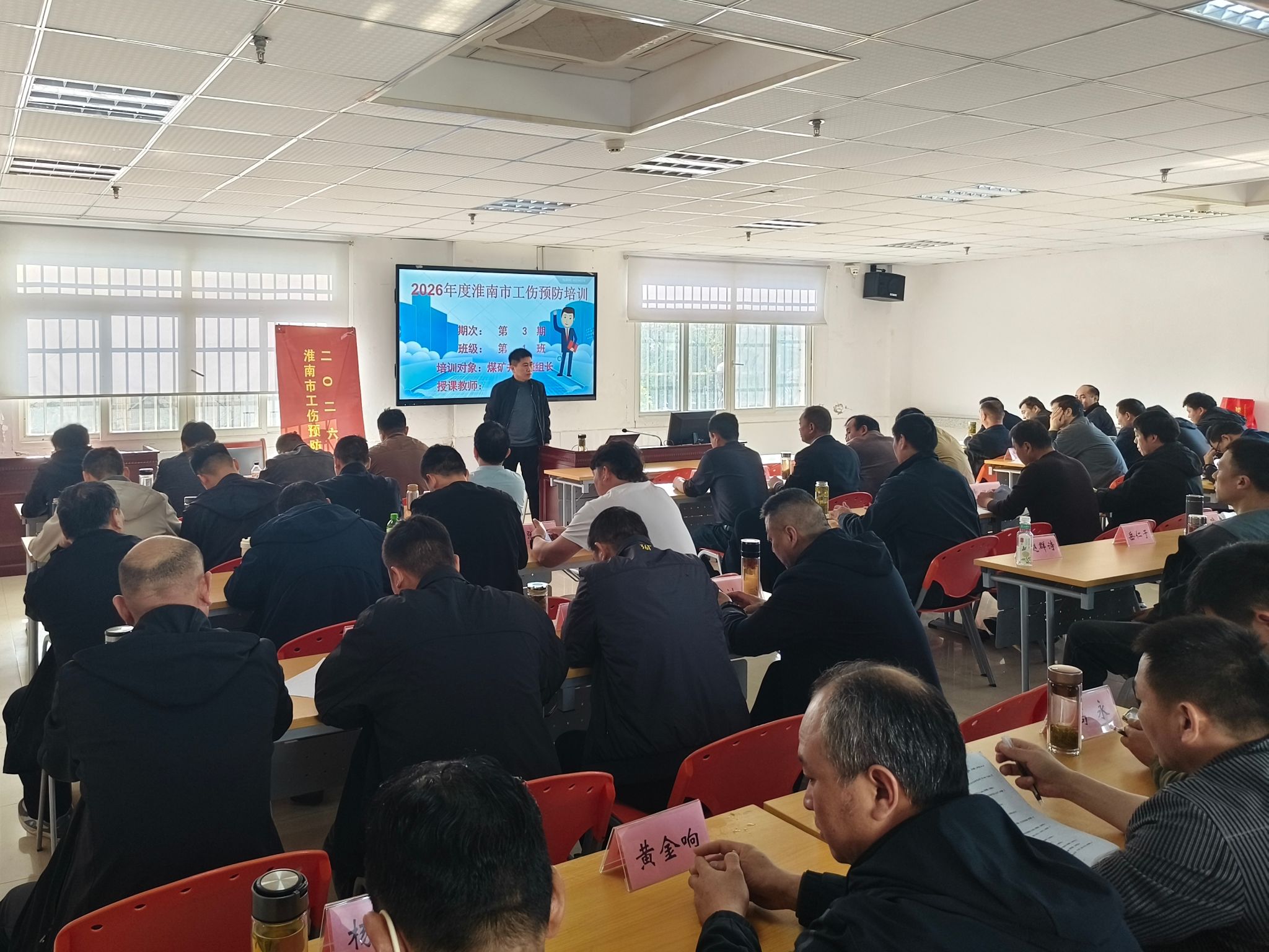 课堂上,徐西亮结合煤矿行业典型事故案例,围绕工伤预防基础知识、工伤事故预防及现场急救技能等内容进行了系统讲解。他重点剖析了班组长在作业现场中的安全职责与履职要点,强调“预防为主、防治结合”的理念,引导学员从源头上减少和避免工伤事故的发生。授课内容深入浅出,案例翔实生动,学员全程专注投入、认真记录要点,积极参与互动交流,学习氛围浓厚。
