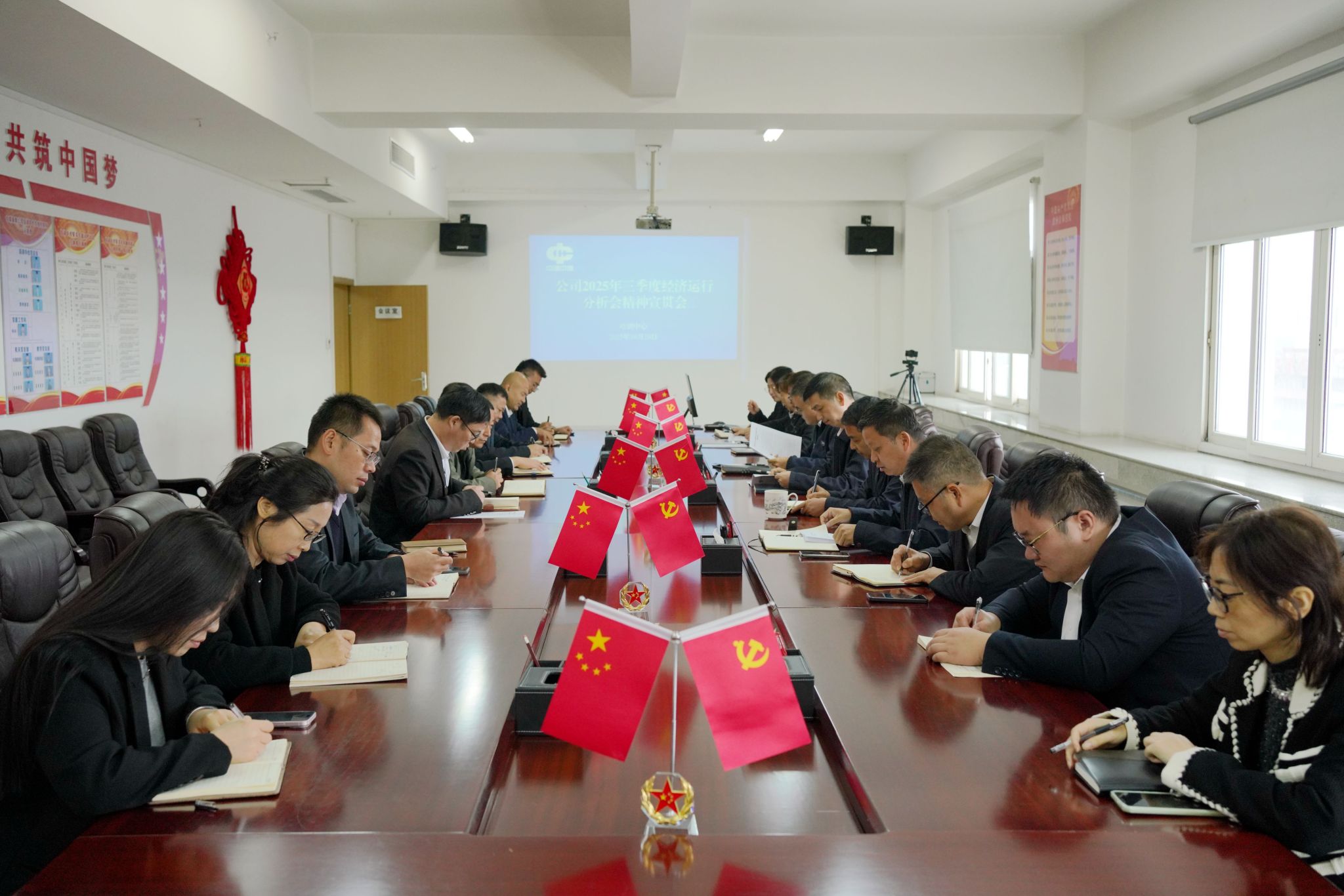 10月20日,培训中心在八楼会议室召开2025年三季度经济运行分析会精神宣贯会,全体教职工参会。