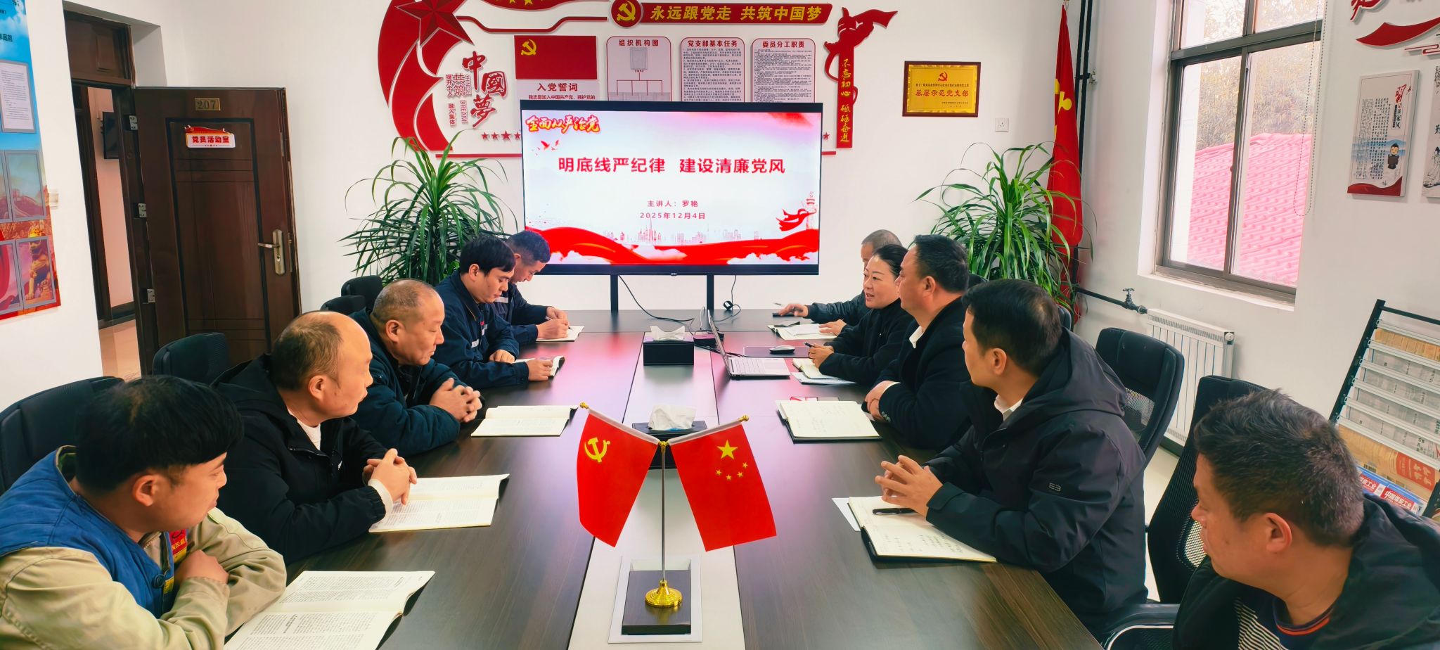 为深入推进全面从严治党向基层延伸,筑牢煤炭发运一线党员干部廉洁从业思想防线,12月4日,煤炭运销管理中心纪检专员以《明底线严纪律 建设清廉党风》为题,为运管中心驻刘庄矿业运销科党支部全体党员、关键岗位人员上了一堂内涵深刻、警示鲜明的廉洁党课。党课紧扣岗位实际,从纪律建设历史、核心要求、现实影响三个维度层层递进,为一线党员校准思想航向、规范履职行为提供了重要遵循。