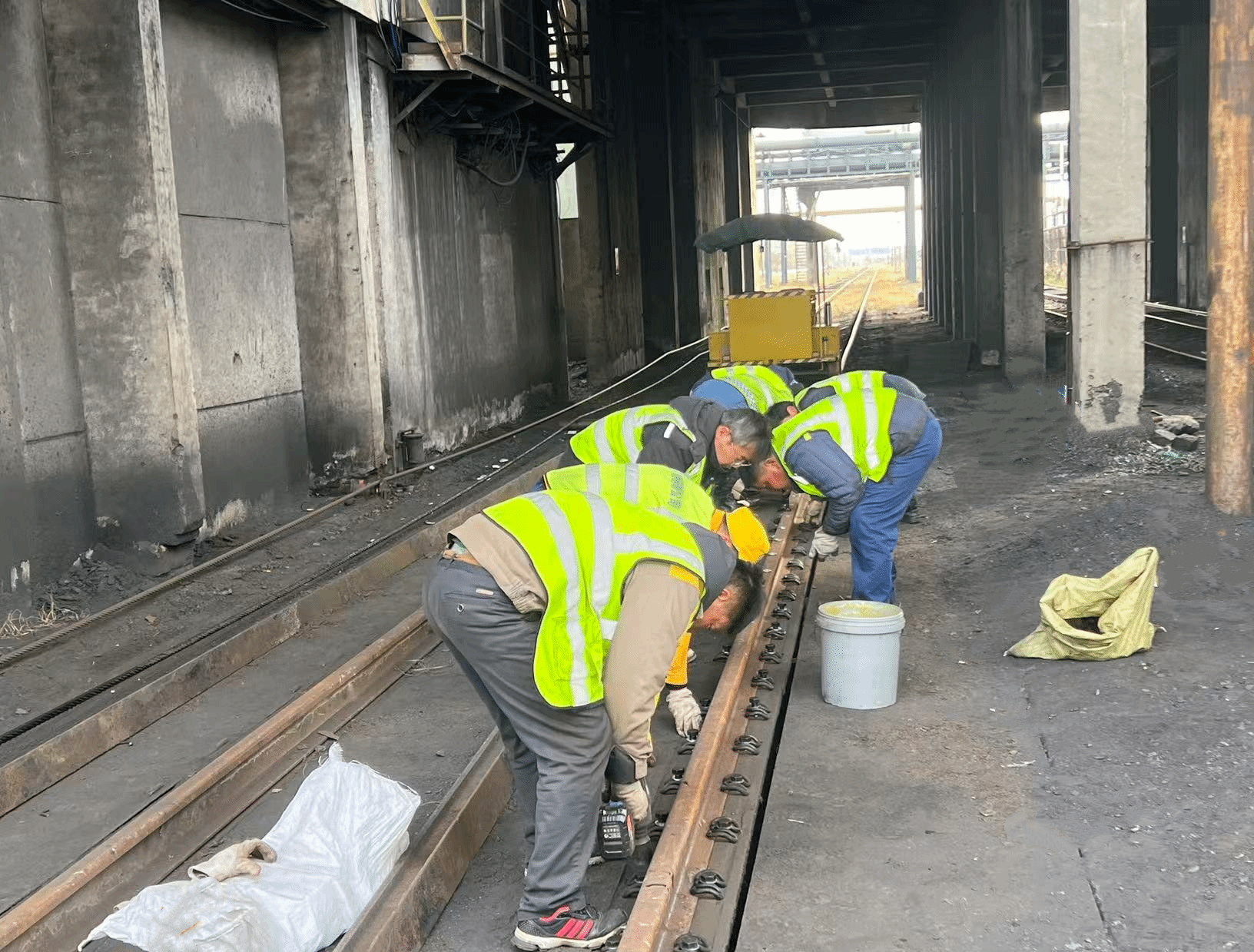 运管中心驻新集一矿运销科在日常巡检中敏锐察觉该隐患,第一时间向矿方汇报情况,并主动牵头联动铁运公司驻一矿站,共同研讨制定科学周密的铁轨更换维修方案。为确保维修工作高效推进,运销科提前谋划物资筹备工作,全面梳理更换所需材料配件清单;针对矿上部分配件短缺的问题,迅速启动内部调剂机制,通过内签流程从其他矿调配物资,在更换施工前一天,将所有材料配件全部准备到位。为最大限度降低对铁运发运工作的影响,维修施工全程遵循 “保生产、保畅通” 原则,精准错峰安排作业时间,实现了施工、发运 “两不误、双保障”。