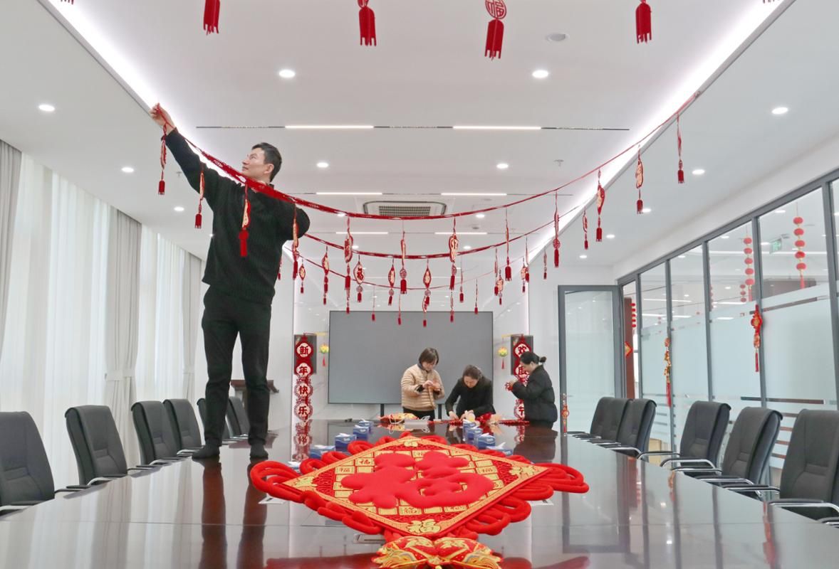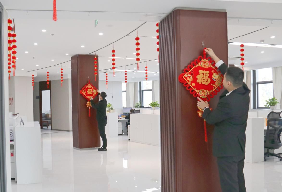 新办公区内,工作人员巧手装扮,装饰布置紧扣“新址迎新岁、马年启新篇”主题,大厅入口旁张贴福字、悬挂马年吉祥贴纸,中国结点缀其间,搭配寓意招财旺业的装饰摆件,呼应马年吉位布局的美好寓意,既喜庆祥和又不失庄重雅致。装饰过程中,大家分工协作、其乐融融,每一处布置都凝聚着对新环境的热爱和对新年的期盼,崭新的办公设施搭配喜庆的新年装饰,既优化了办公氛围,也增强了干部职工的归属感与凝聚力。
