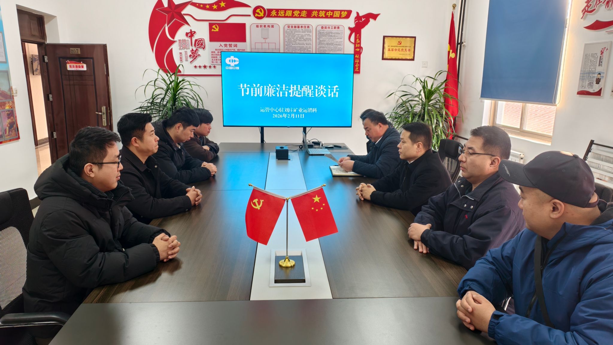 春节临近,为抓实全面从严治党要求,防范节日期间腐败问题,筑牢党员干部和关键岗位人员的廉洁自律意识,巩固作风建设成效,2月11日,煤炭运销管理中心驻刘庄矿业运销科党支部召开节前廉洁提醒谈话,全体党员及关键岗位人员参加。