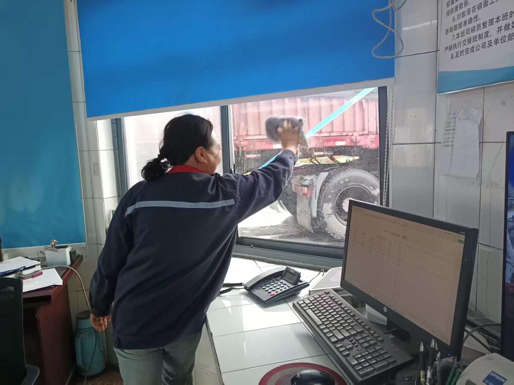 与此同时,地磅房积极践行矿文明创建要求,利用工作间隙对地磅房及周边区域进行全面清理。大家分工协作,有的擦拭门窗玻璃、清扫地面灰尘,有的清理地磅缝隙中积存的煤泥杂物,还有的对室内办公设备、桌椅进行规整。经过彻底打扫,地磅房窗明几净、物品摆放有序,室内外环境焕然一新。