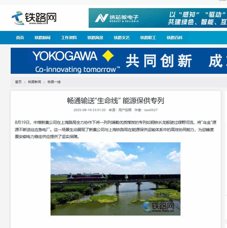 8月19日,中煤新集公司在上海路局全力协作下将一列列满载优质煤炭的专列如钢铁长龙般驶过绿野河流,将"乌金"源源不断送往应急电厂。这一场景生动展现了新集公司与上海铁路局在能源保供运输体系中的高效协同能力,为迎峰度夏安徽电力稳定供应提供了坚实保障。