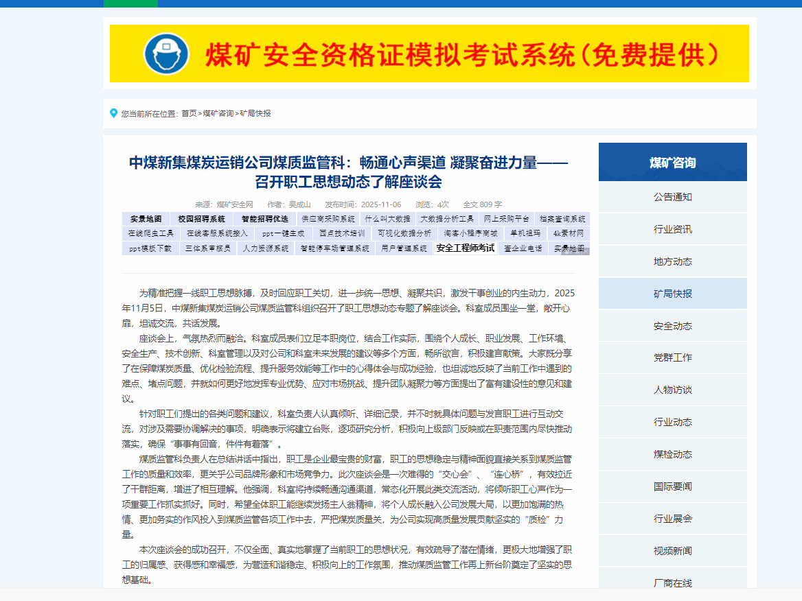 中煤新集煤炭运销公司煤质监管科:畅通心声渠道 凝聚奋进力量