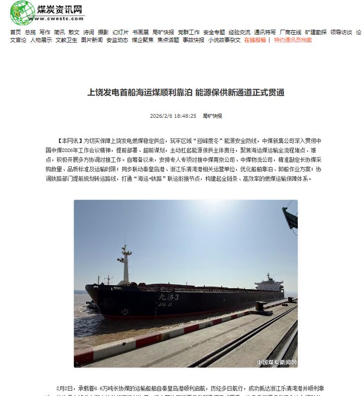 为切实保障上饶发电燃煤稳定供应,筑牢区域“迎峰度冬”能源安全防线,中煤新集公司深入贯彻中国中煤2026年工作会议精神,提前部署、超前谋划,主动扛起能源保供主体责任,聚焦海运煤运输全流程堵点、难点,积极开展多方协调对接工作。自筹备以来,安排专人专项对接中煤南京公司、中煤物流公司,精准敲定长协煤采购数量、品质标准及运输时限;同步联动秦皇岛港、浙江乐清湾港相关运营单位,优化船舶靠泊、卸船作业方案;协调铁路部门提前规划转运路线,打通“海运+铁路”联运衔接节点,构建起全链条、高效率的燃煤运输保障体系。