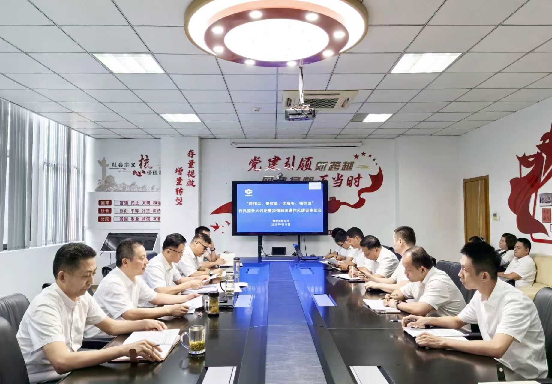 为深入推进作风建设,切实提升工作效能与服务质量,9月15日,煤炭运销公司组织召开“转作风、提效能、优服务、强担当”作风提升大讨论暨加强和改进作风建设座谈会,全体人员参会,聚焦作风短板,明确整改方向,为公司高质量发展筑牢作风根基。