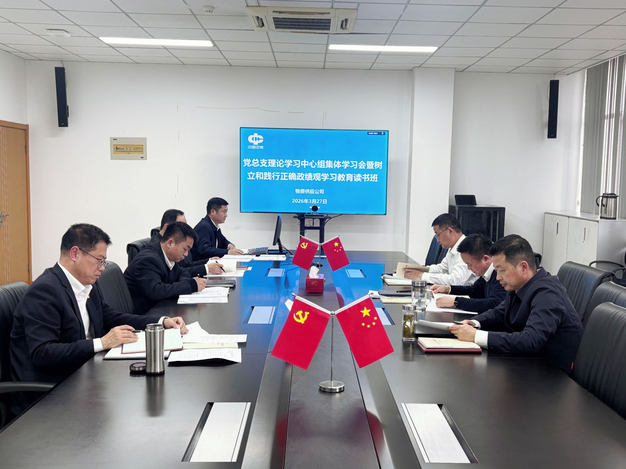 3月27日,物资供应公司举办党总支理论学习中心组集体学习会暨树立和践行正确政绩观学习教育读书班。党总支书记、副经理马振章主持会议,领导班子成员参加,公司采管办、党建工作科相关人员列席会议。