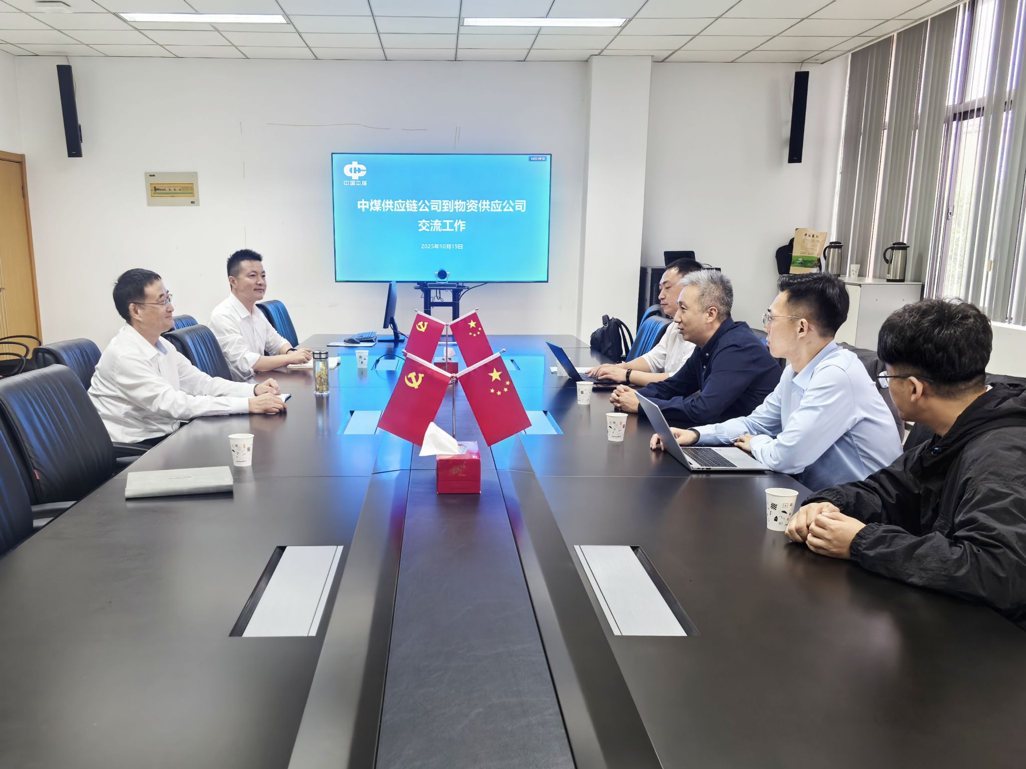 10月15日,中煤能源供应链管理(北京)有限公司何琼斌一行到物资供应公司调研交流工作,重点围绕中煤易购电子超市采购业务等方面展开交流,物资供应公司经理王运祥等相关人员陪同。