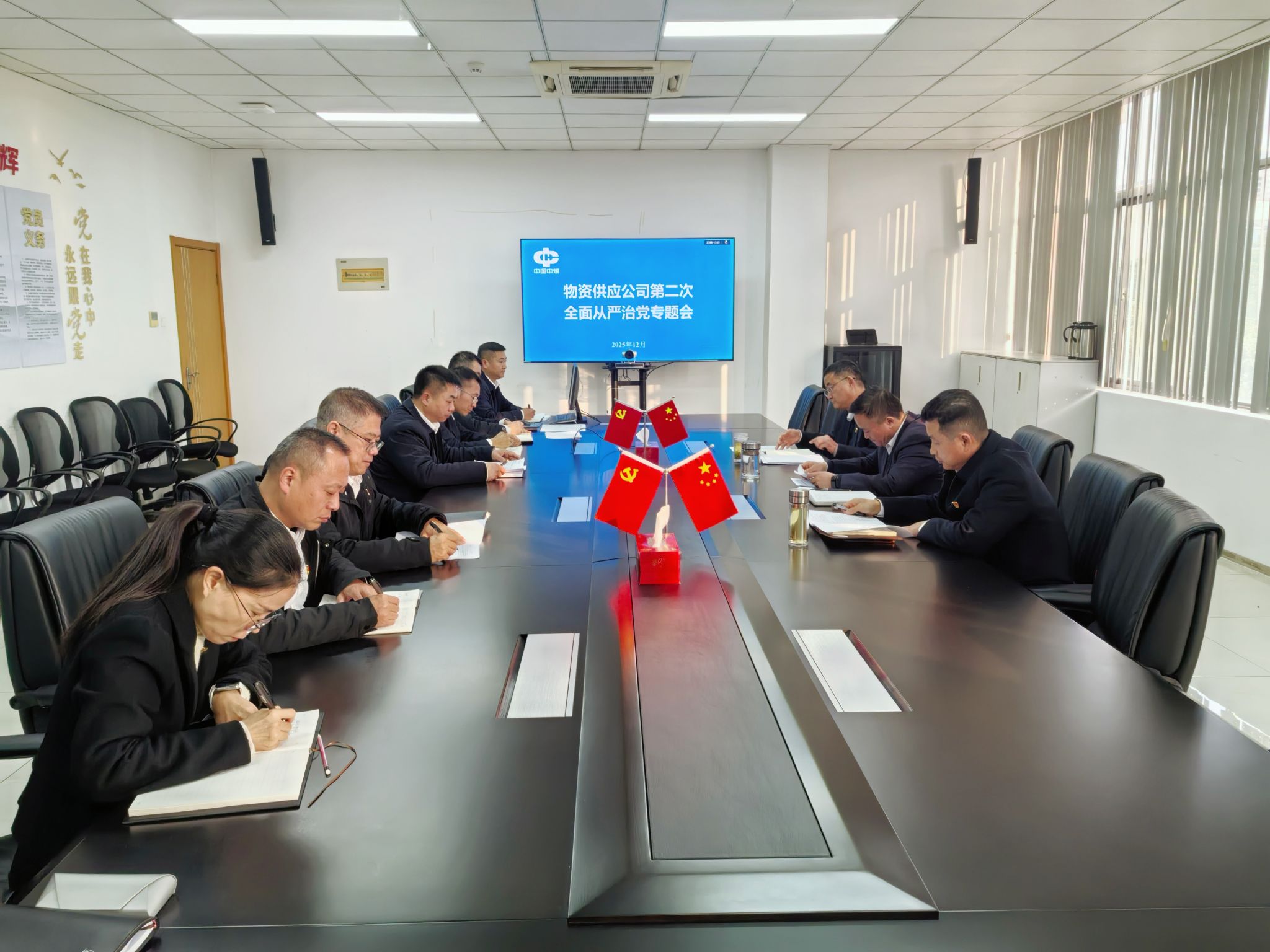 12月19日,物资供应公司召开2025年第二次全面从严治党专题会,深入贯彻落实公司全面从严治党专题会精神,总结工作、查摆问题、部署任务。物资供应公司党总支书记、副经理马振章主持会议,物资供应公司领导班子成员、机关科室负责人参加会议。