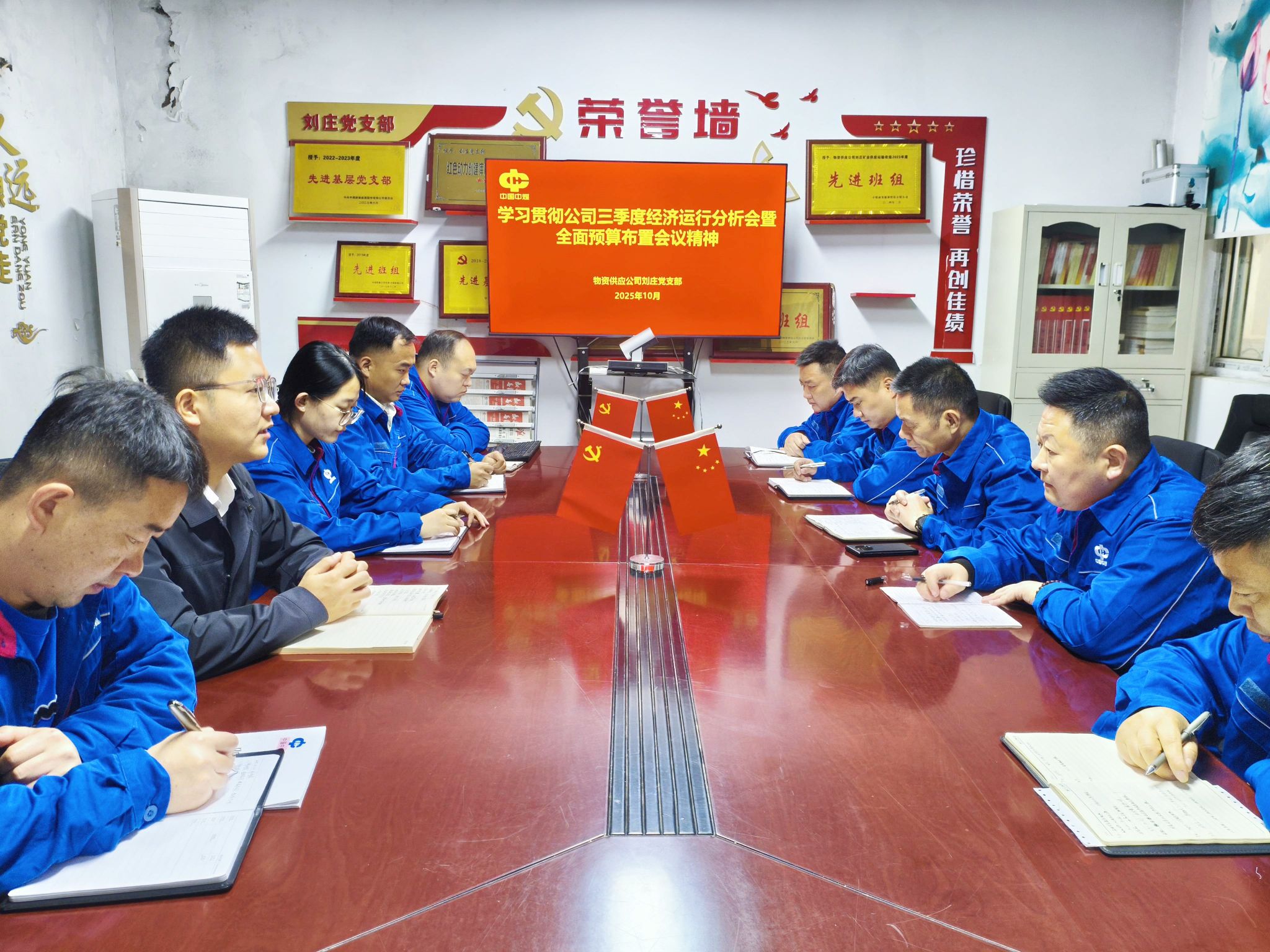 10月14日,物资供应公司各单位组织宣贯公司2025年三季度经济运行分析会暨全面预算布置会议精神。