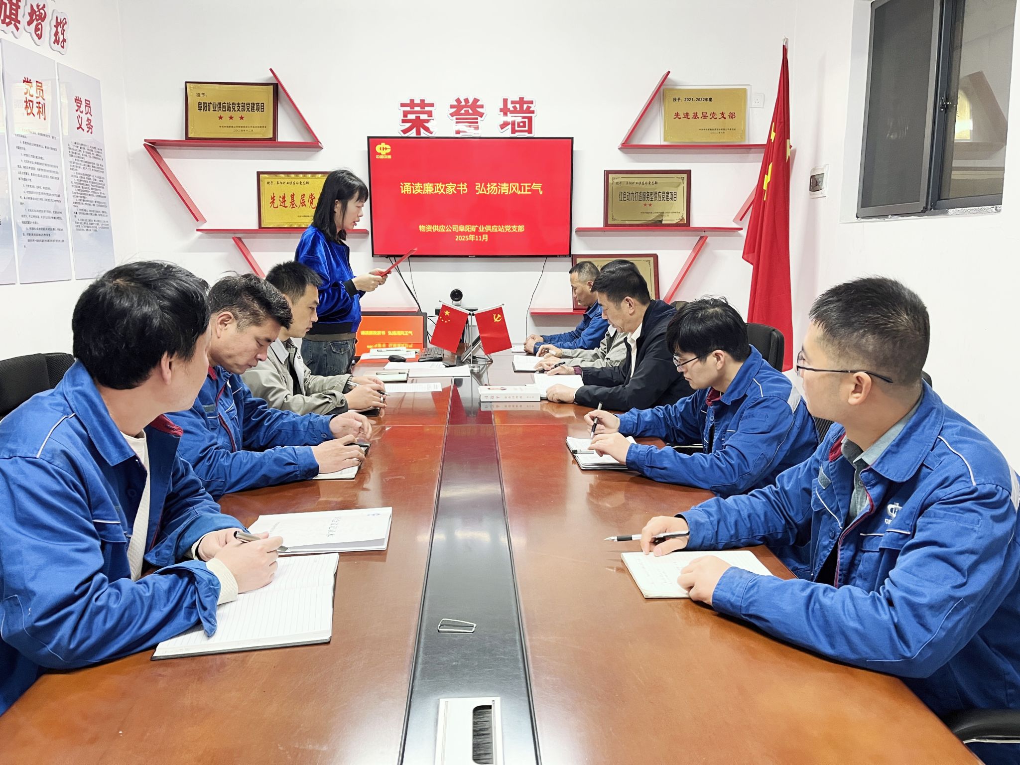 为进一步强化党员廉洁自律意识,推动廉洁理念深植岗位、浸润家庭。11月6日,物资供应公司阜阳矿业供应站党支部开展“诵读廉政家书 弘扬清风正气”主题党日活动