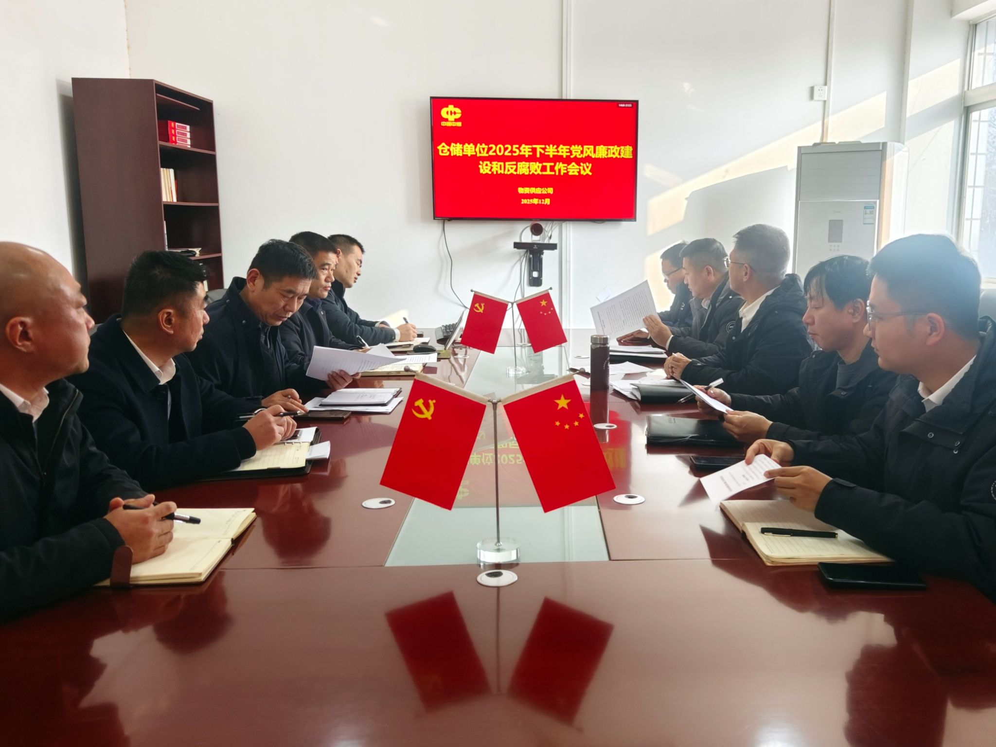 会议要求,全体党员干部一要扎实个人作风,发挥表率作用。管理人员要牢记党员干部身份,始终以严字当头、高标准自律,充分发挥“领头羊”的示范引领作用,带动团队形成风清气正的工作氛围。二要压实“一岗双责”,强化廉洁教育。要切实扛起廉洁建设责任,通过开展理论学习、典型案例分析、警示教育等活动,深化全员对党风廉政建设重要性的认识。三要排查廉洁风险,筑牢防控屏障。各单位要加大廉洁风险点排查力度,聚焦物资验收、仓储管理、调配使用等关键环节,全面梳理潜在风险,制定科学有效的管控措施,做到常提醒、常排查、常整改,从源头上杜绝不廉洁行为的发生。四要关注思想动态,凝聚工作合力。要开展谈心谈话活动,主动了解职工思想状况,及时发现并疏导工作中存在的思想困惑和心理压力,搭建沟通桥梁、增进团队凝聚力,为党风廉政建设和各项业务工作的顺利推进营造和谐稳定的环境。