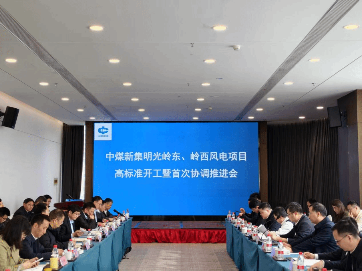 近日,中煤新集明光岭东、岭西风电项目高标准开工暨首次协调推进会在安徽省滁州市明光市南崇开元大酒店顺利召开。公司党委委员、副总经理王绪民,公司电力及新能源事业部主任张凯,新能源公司党委书记、总经理颜奇峰出席会议。中国电建贵阳院、中国能建安徽电建二公司、中船科技等各参建单位相关负责人参会。