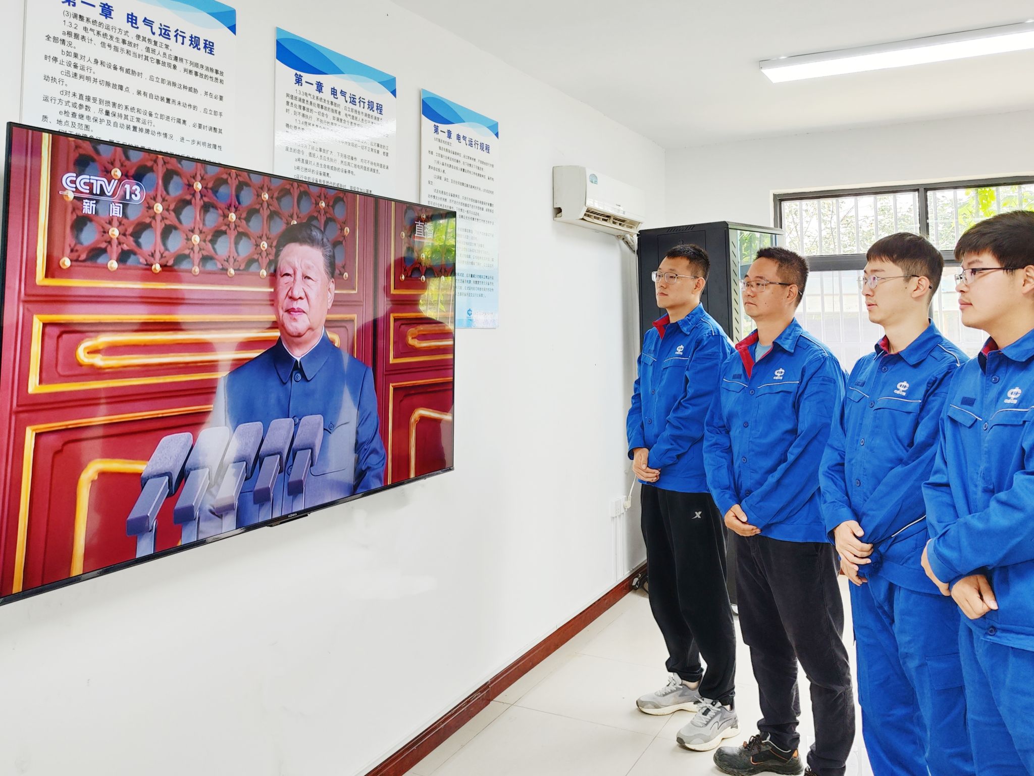 2025年9月3日,纪念中国人民抗日战争暨世界反法西斯战争胜利80周年阅兵仪式在北京隆重举行。中煤新集新能源管理公司全体员工通过电视、电脑、手机等各类电子设备观看了阅兵仪式。