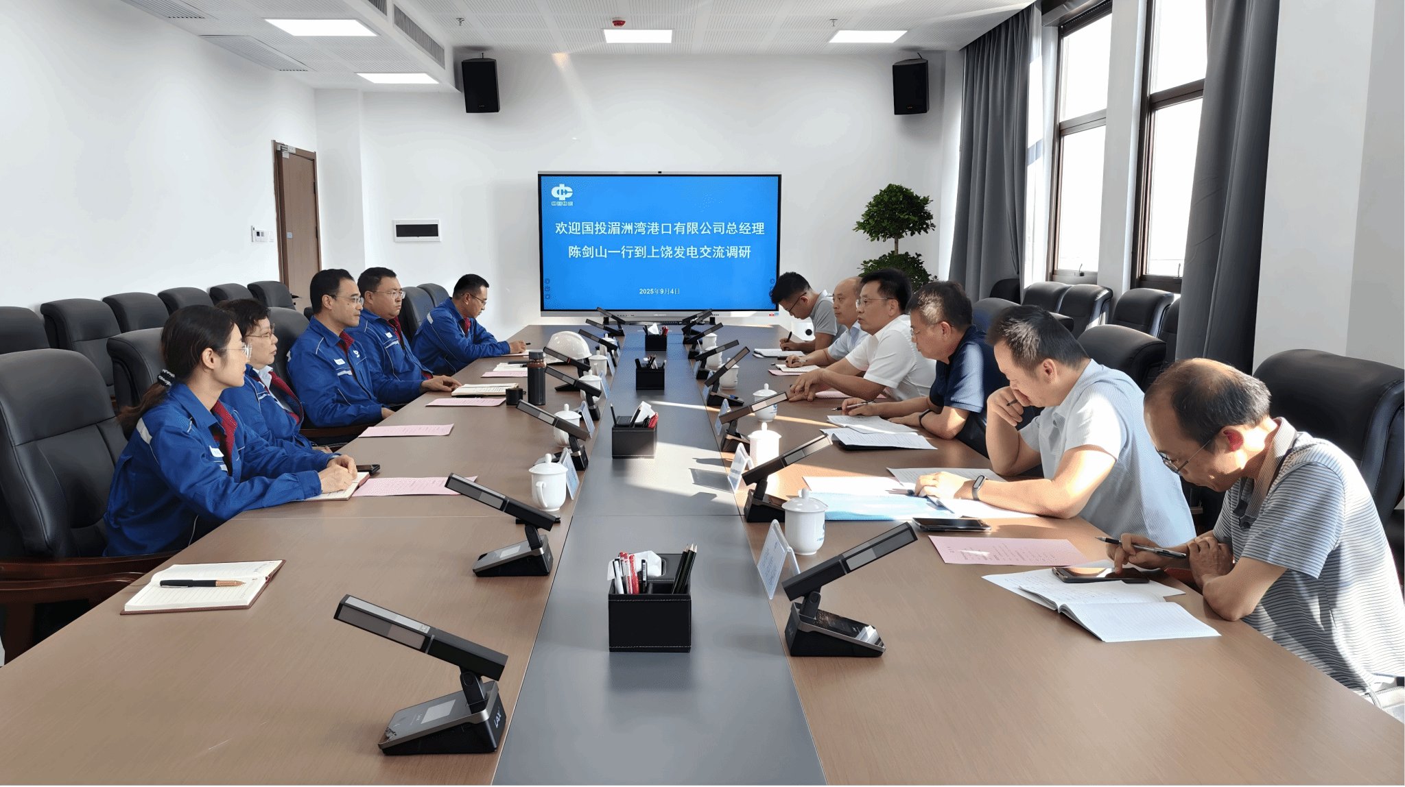 9月4日,国投湄洲湾港总经理陈剑山一行到上饶发电就煤炭运输进行了调研交流,临时党委书记、董事长、总经理刘泽民、副总经理麻亚东、总会计师熊国珍热情接待并参加座谈。
