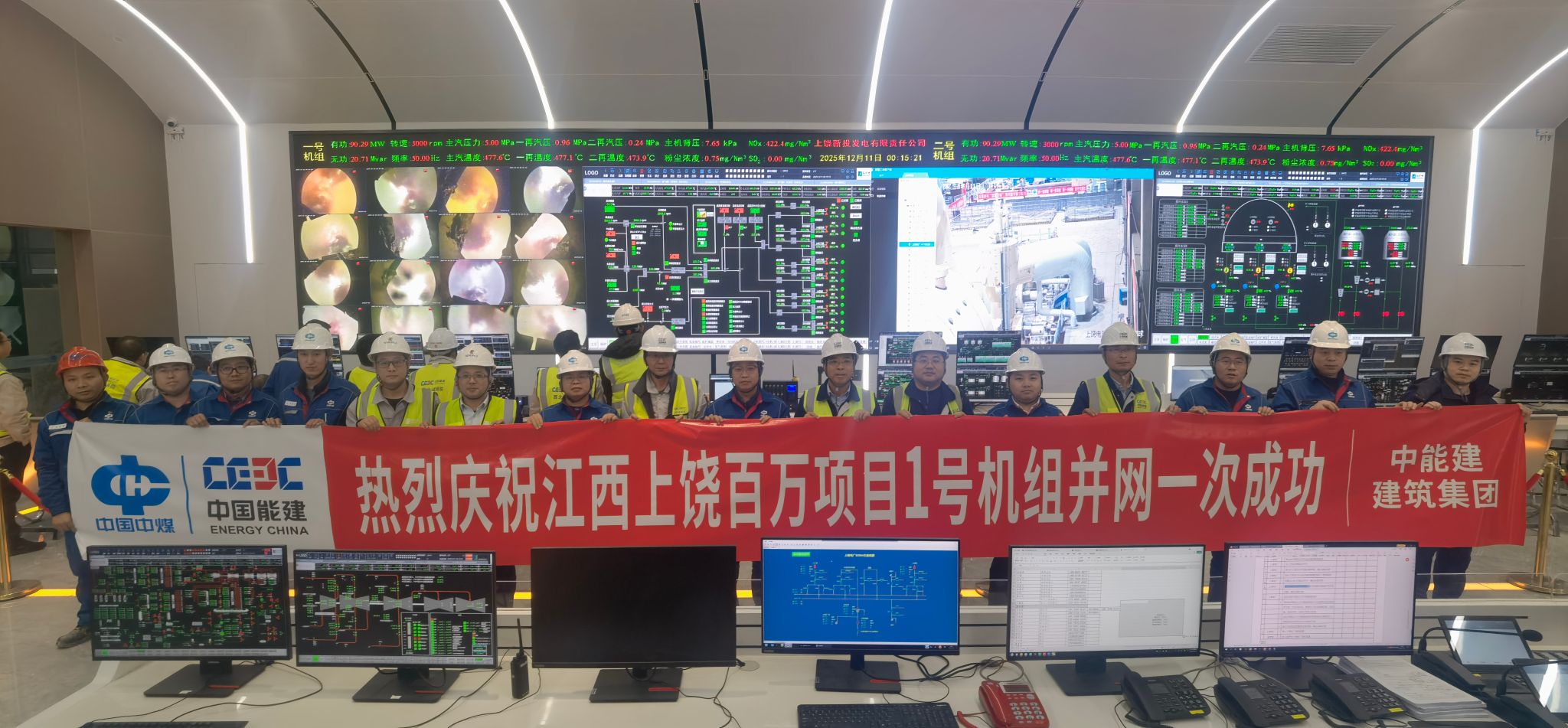 12月10日23时59分,随着调度指令下达,上饶发电1号机组顺利完成首次并网操作,一次成功!并网后,机组主辅设备运行平稳,各系统参数正常,标志着该项目进入全面冲刺阶段,为后续168小时试运行及按期投产筑牢了坚实根基。