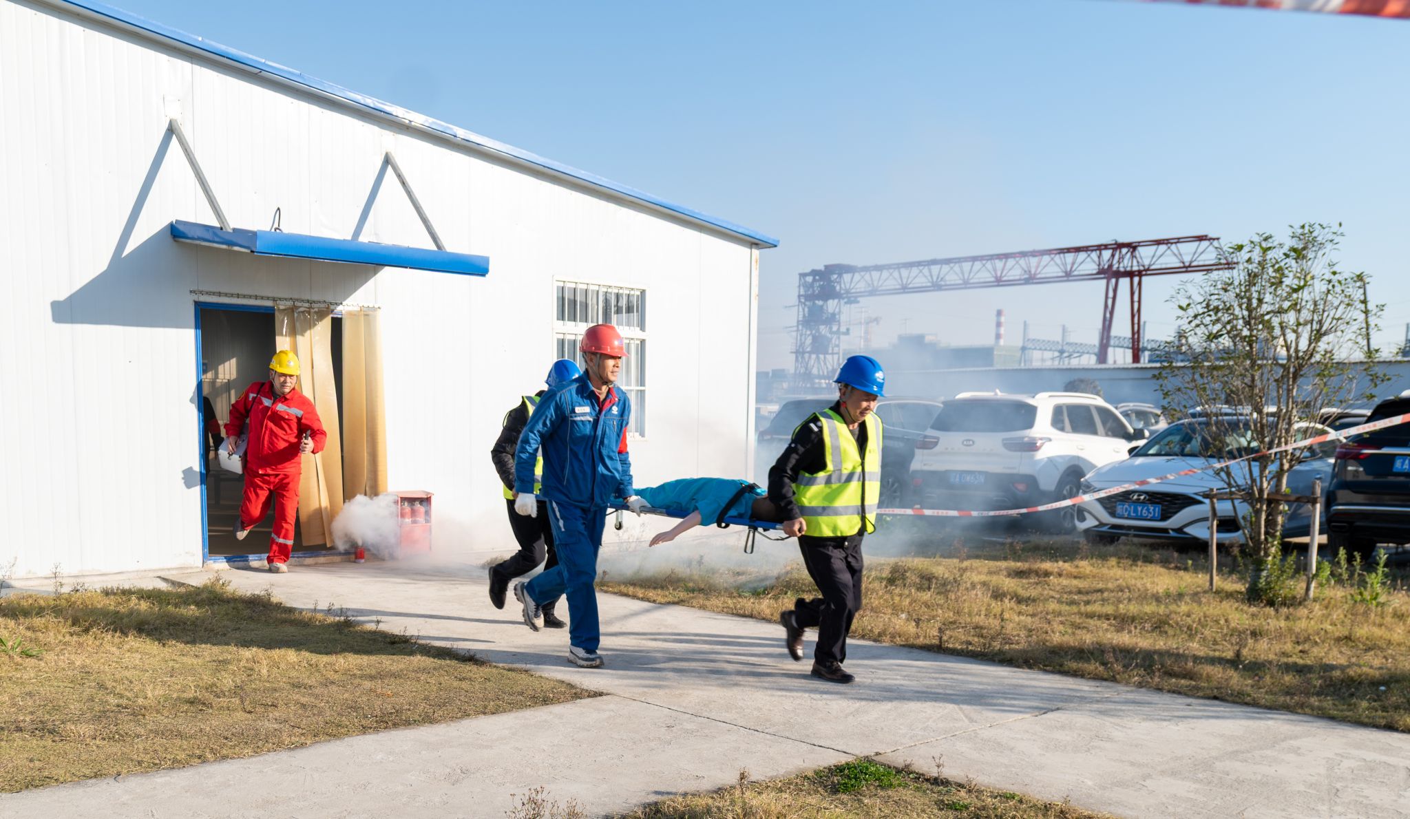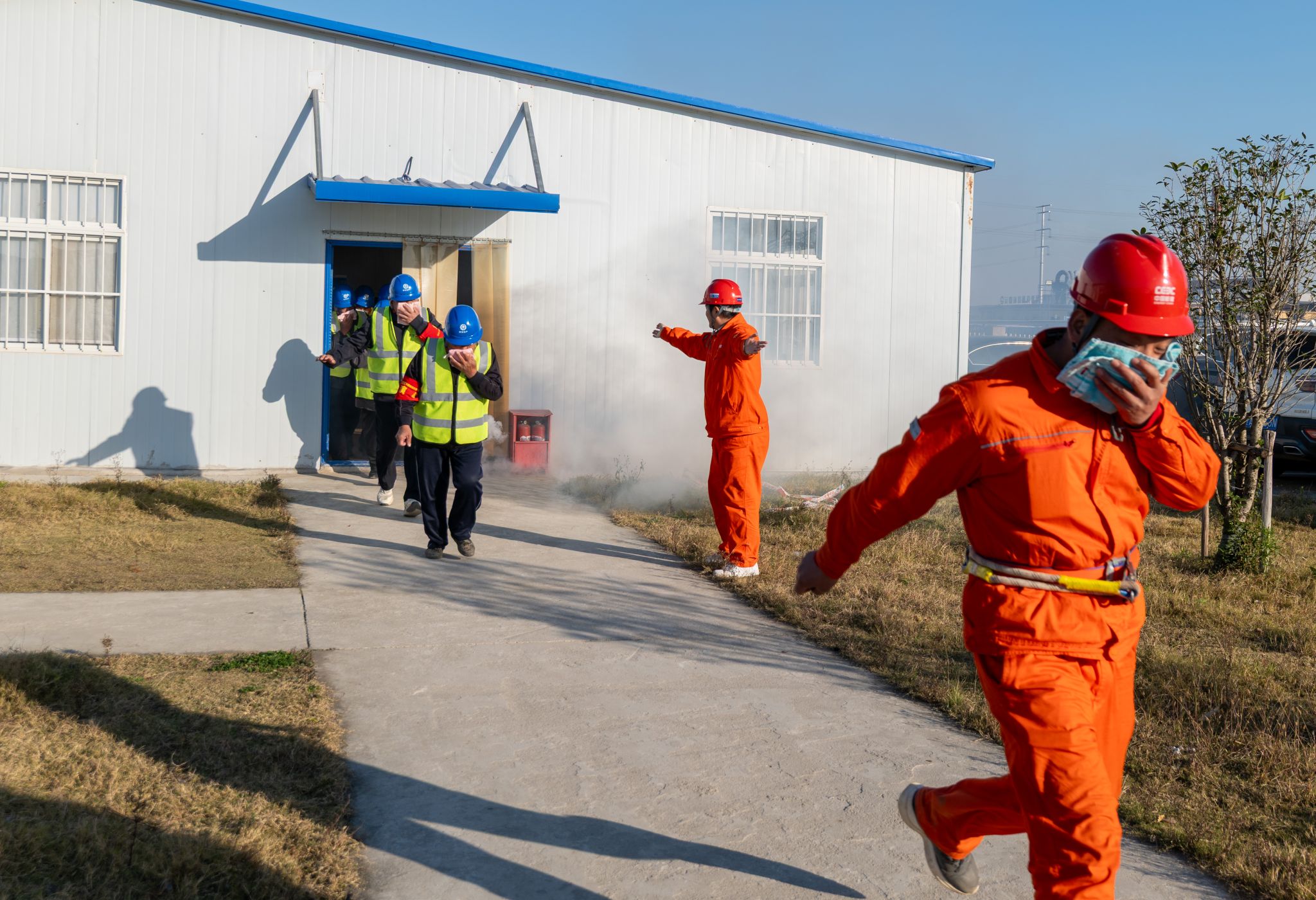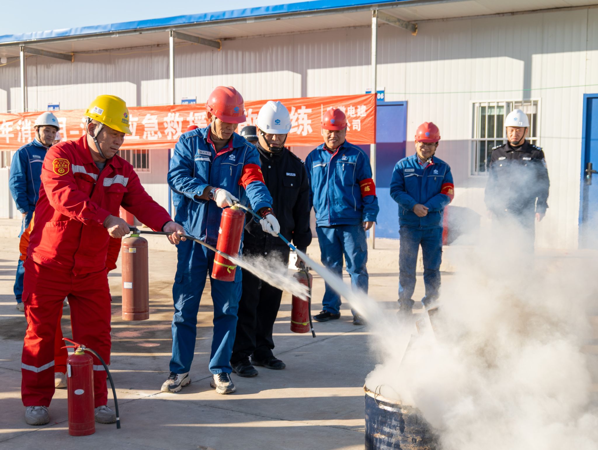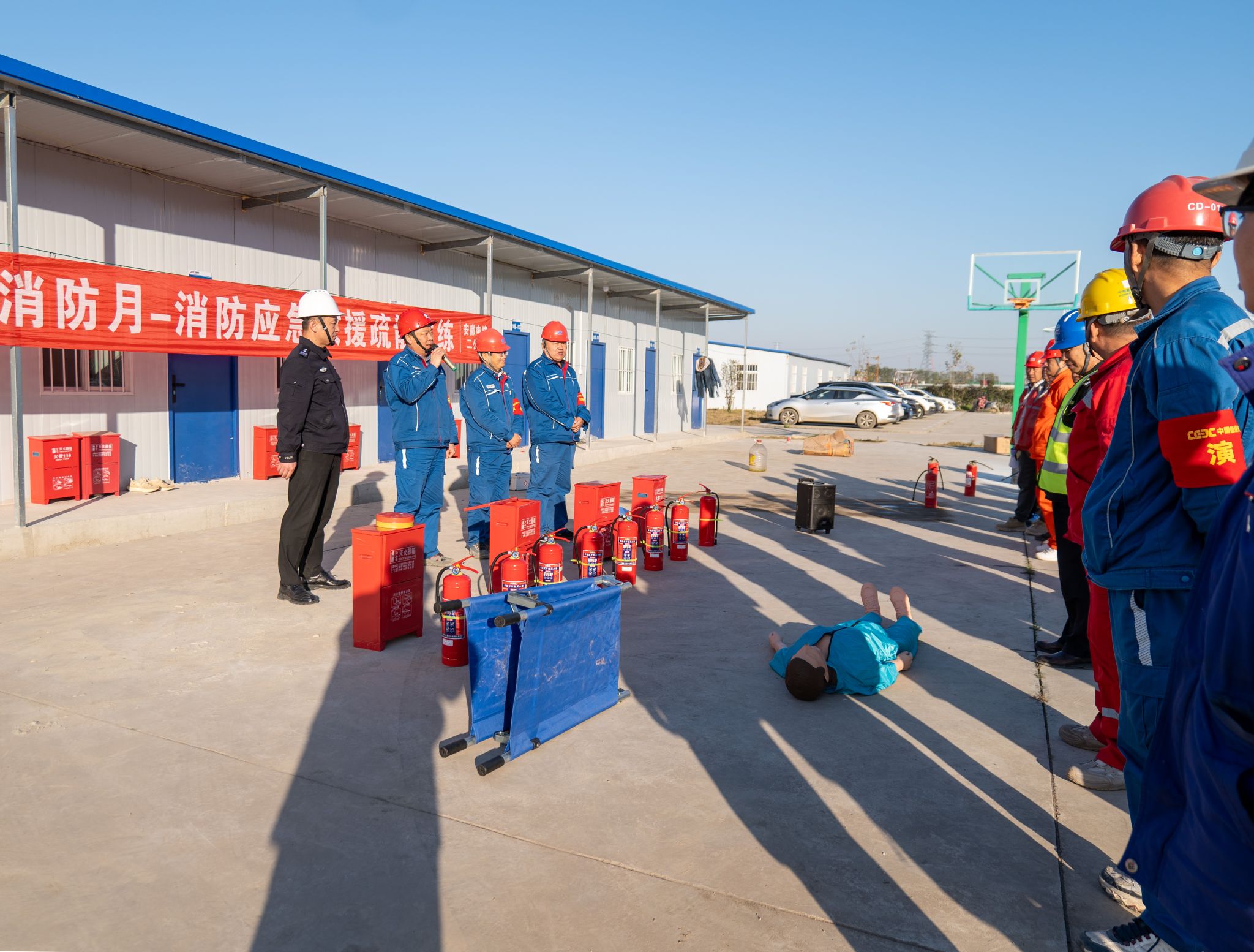 11月18日,为贯彻落实“119消防安全宣传月”要求,切实提升员工消防安全意识和应急处突能力,检验火灾应急预案的实用性和可操作性,滁州发电公司组织参建单位相关人员,在项目生活区联合开展火灾事故应急逃生疏散演练。