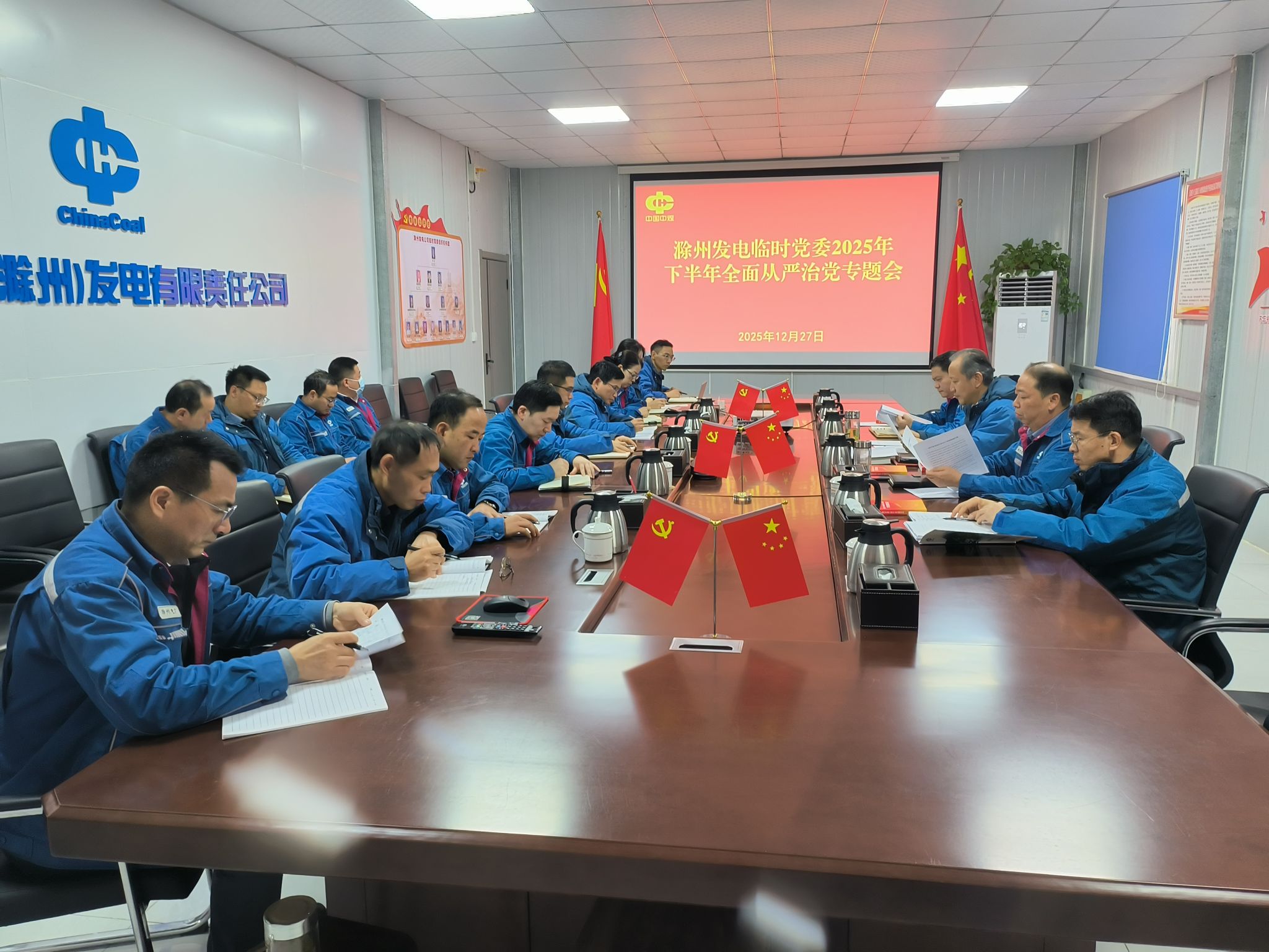 12月27日滁州发电公司党委召开2025年下半年全面从严治党专题会议,深入贯彻落实上级关于全面从严治党的部署要求,总结分析当前形势与存在问题,研究部署2026年度党风廉政建设重点任务,持续压紧压实管党治党政治责任。公司临时党委书记、董事长邓国荣同志主持会议,领导班子成员出席会议。