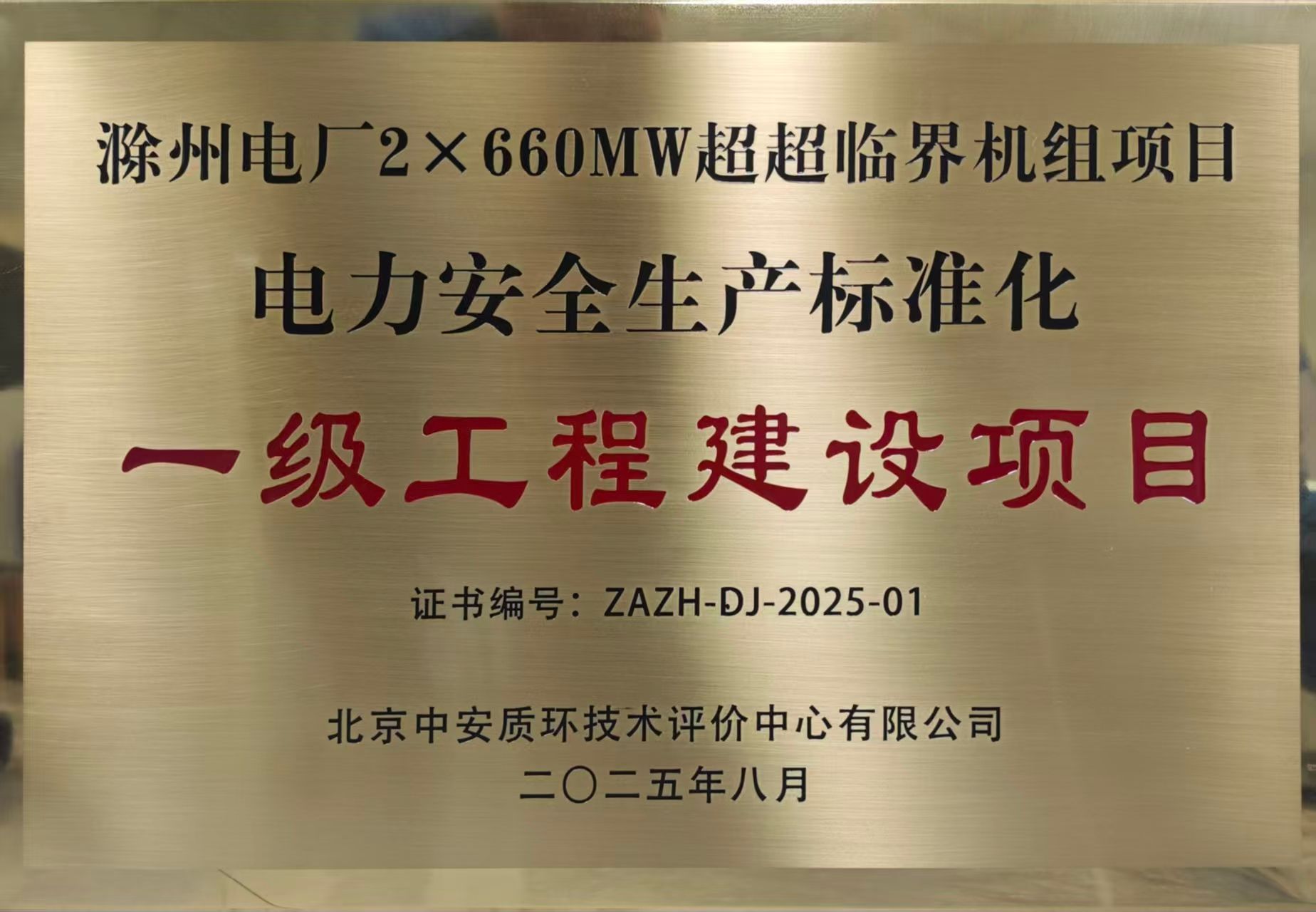 8月,滁州发电成功获得了“电力安全生产标准化一级工程建设项目”称号。此项认证标志着公司工程建设期的安全管理体系达到国家标准,也代表着安全管理体系科学性、有效性的国家级肯定。
