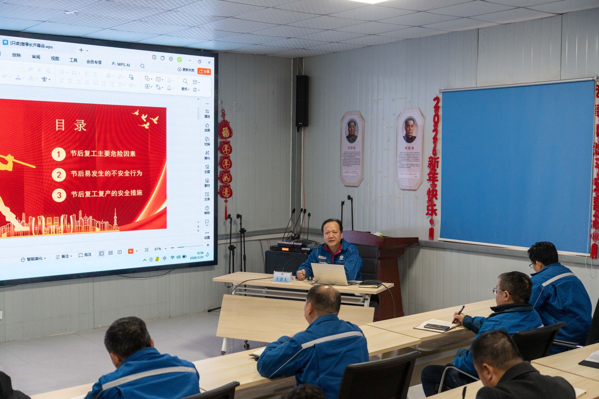 他强调,一要强化思想教育。持续深化全员安全认知,推动安全意识内化于心、外化于行,融入日常工作。二要筑牢责任体系。层层压实主体责任、第一责任人责任和“一岗双责”,确保责任全覆盖、无死角。三要督促现场措施落实。坚决杜绝“措施留在纸上、管理浮在表面”,推动安全管理重心下沉到班组,确保各项安全措施在现场落地生根、取得实效。四要健全完善安全保障、安全监督、技术支撑三大体系。尤其是安全教育培训体系,做到三级全覆盖。五要深化“六个三”长效落实。紧盯“三外”人员管理,严格执行“三分离”,严反“三违”,筑牢“三防”防线。