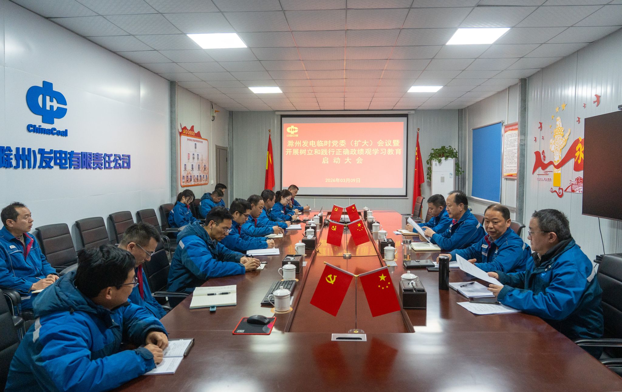 3月9日,滁州发电公司召开临时党委(扩大)会议,深入学习贯彻习近平总书记关于树立和践行正确政绩观的重要论述,认真落实中央党的建设工作领导小组会议精神及中国中煤、新集公司相关部署要求,部署滁州发电临时党委开展树立和践行正确政绩观学习教育工作。滁州发电临时党委书记、董事长邓国荣主持会议并讲话,领导班子成员出席会议。