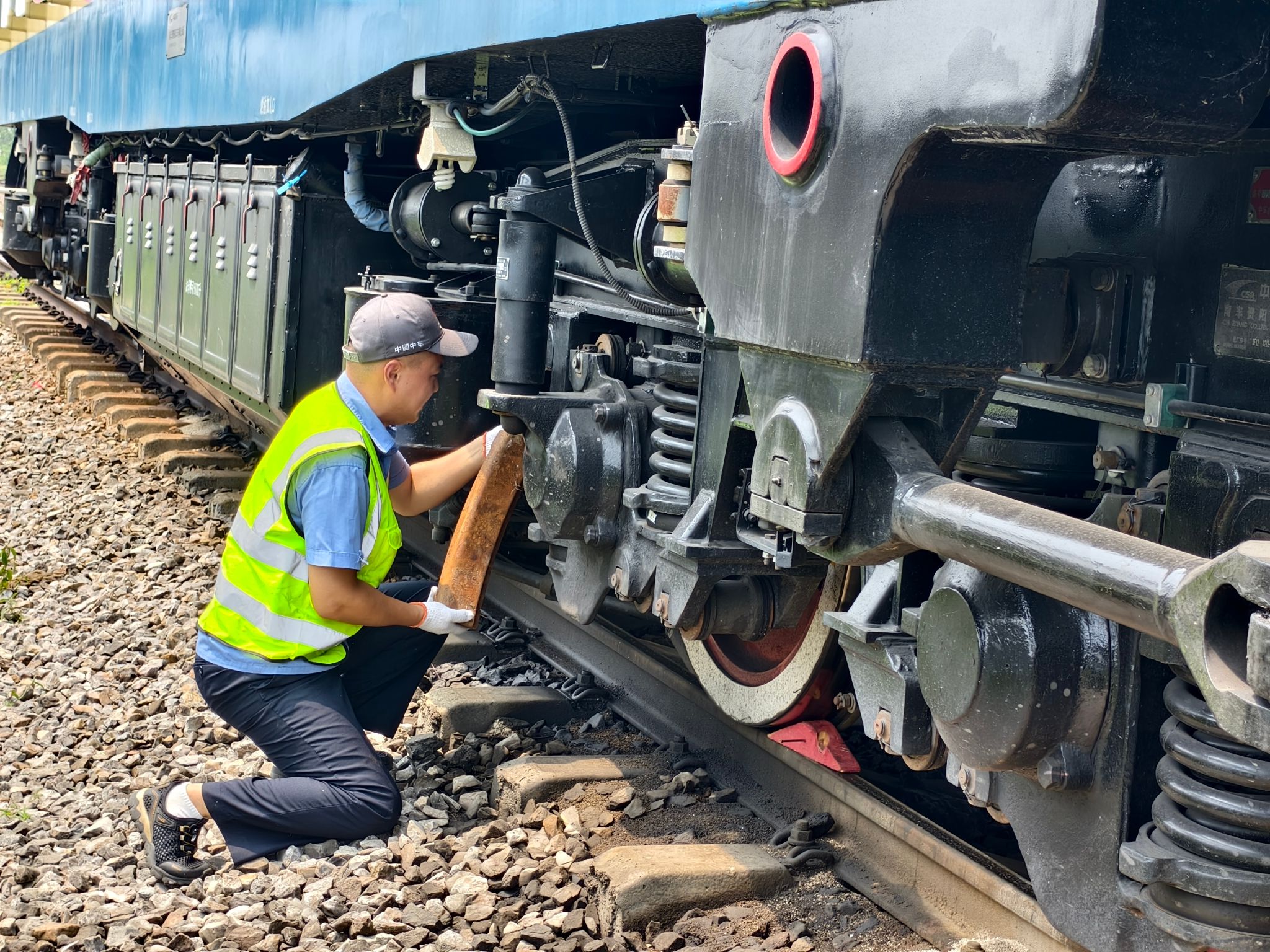 “每一颗螺栓、每一组数据,都关系行车安全,容不得半点马虎。”检修现场,机务班工作人员俯身作业,手持检车锤仔细敲击轮对、轴箱等关键部件,凭借丰富经验精准辨别是否存在松动或裂纹隐患。随后,卡尺、千分尺等精密工具轮番上阵,对轮对直径、轮缘厚度等关键尺寸进行逐一测量并记录,0.1毫米的细微磨损也无处遁形。