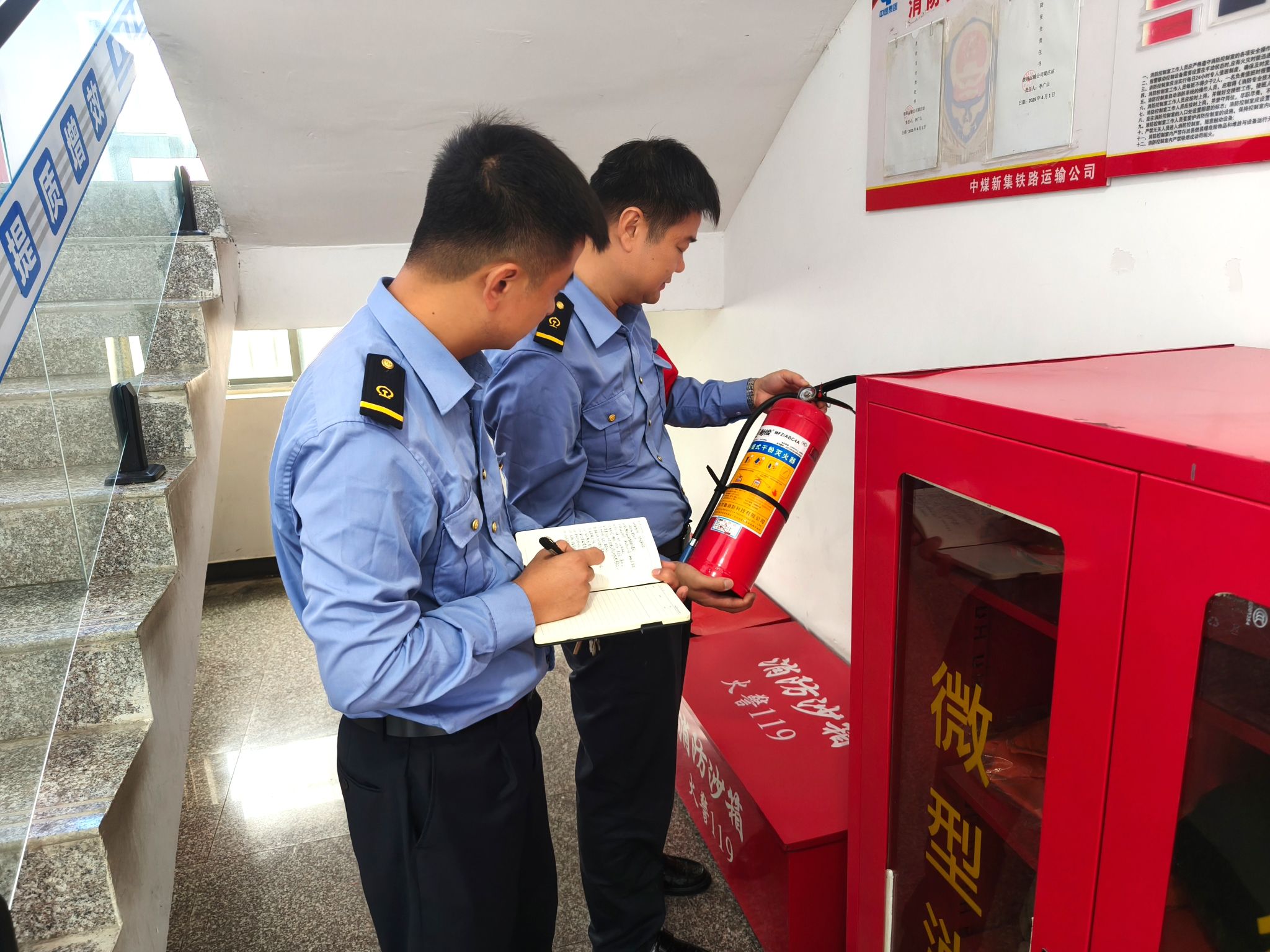 精准发力,直击风险隐患关键点。结合季节性火灾特征,检查人员以“放大镜”思维深入排查每一处隐患,精准聚焦风险核心。在各矿车站,重点检查消防器材配置达标情况、通风系统运行状态、货物堆放安全间距,严查违规使用大功率电器、私拉乱接电线等行为。细致核查“两炉一灶”车电状态及防火隔断门密封性能,逐一核对灭火器铅封、压力指针与维修日期,坚决杜绝设备失效。对发现的问题隐患建立详细台账,明确整改责任单位、责任人和完成时限,实行销号管理,推动隐患整改“动态清零”。