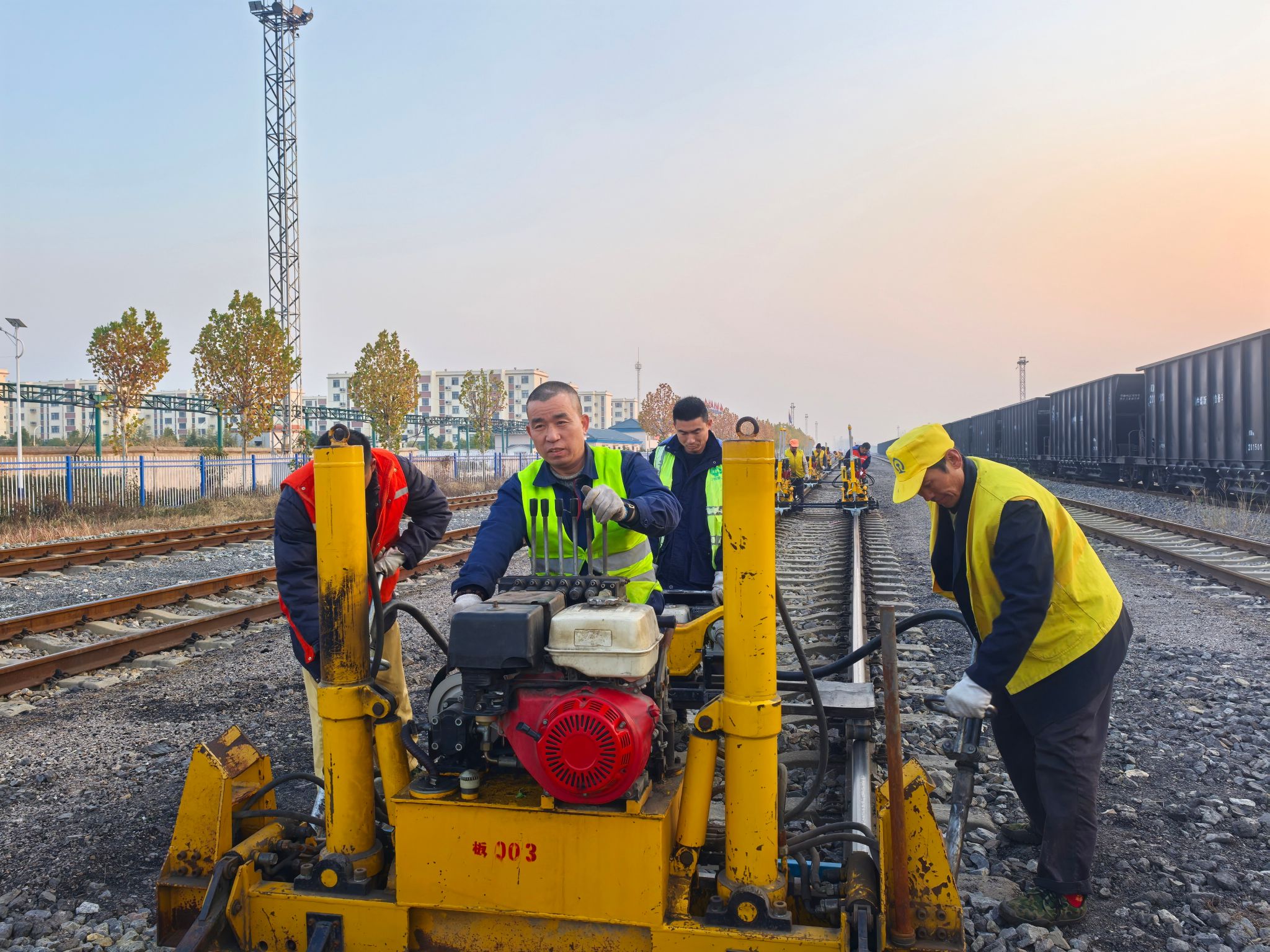 面对冬季煤炭运输需求加大、气候条件复杂等挑战,刘庄工区坚持提前研判、精细部署,将隐患整治与预防性维护相结合。作业现场,职工们有序开展各项检修作业:对接轨区段进行全面螺栓紧固与轨距校正,对正线翻浆冒泥地段进行重点整治并补充夯实道砟,针对关键道岔精准测量几何尺寸并及时开展大修施工。通过对采煤塌陷区加强巡查与治理,及时完成补充道砟、起拨道及调整轨缝等作业,有效预防了线路变形,提升了设备稳定性。