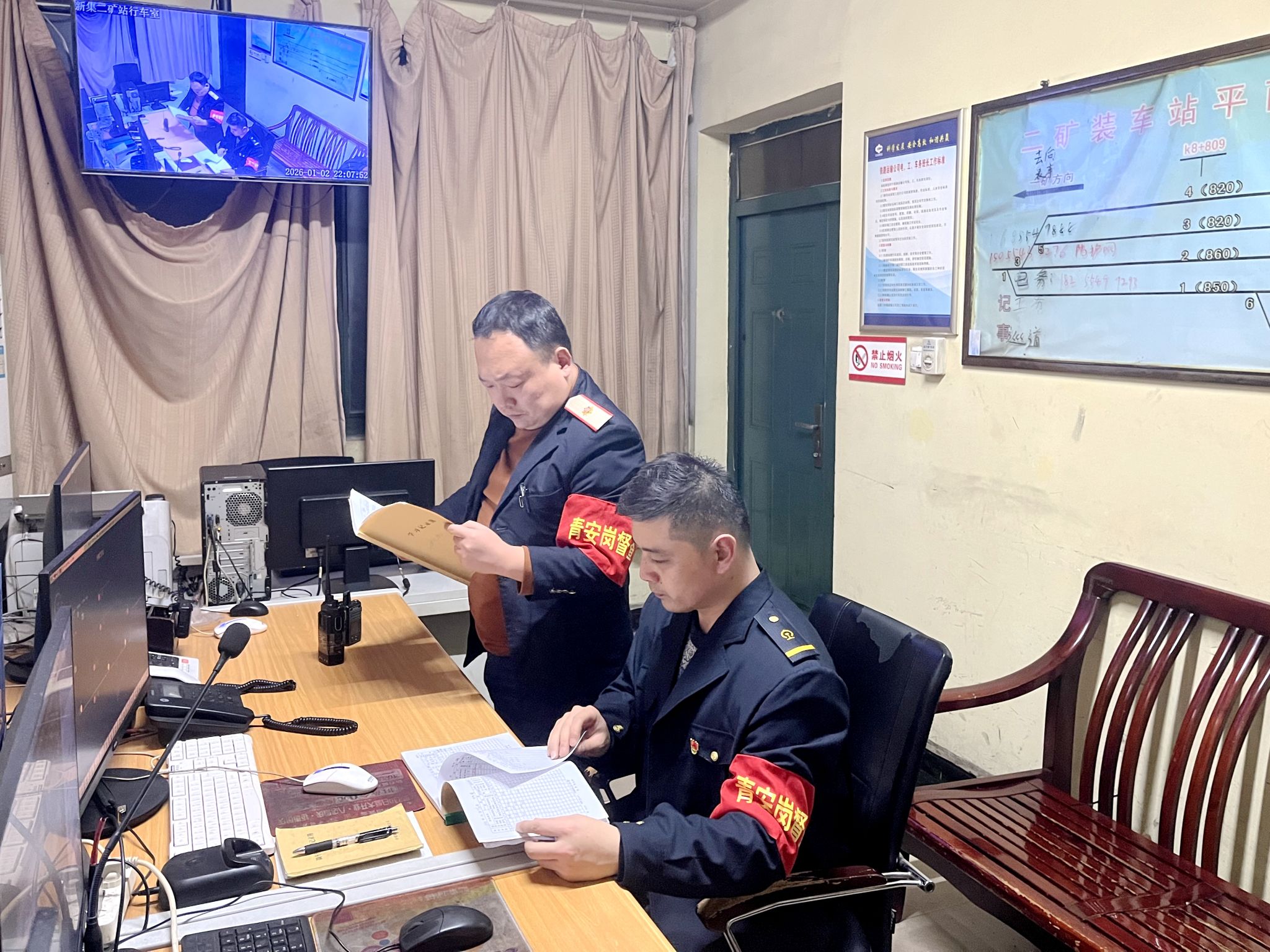 为巩固年度安全成果,保障新年运输生产平稳开局,元旦节假日期间,铁运公司二矿站青安岗充分发挥青年监督力量,以“安全不放假、监督不缺位”为准则,组织青年岗员开展行车室突击夜查行动,以青春担当筑牢假期安全防线,用实际行动诠释青年职工的责任与使命。