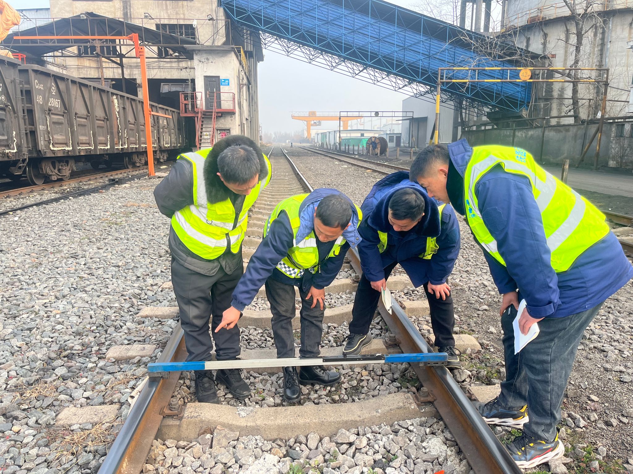 纸上得来终觉浅,为促进学用结合,车站安排业务骨干带领新职工深入现场开展教学。在线路旁,师傅们实地讲解轨道结构、养护重点与信号标识含义,演示道尺测量等基本操作;在工具库内,逐一介绍各类养护机具的功能与使用方法,并指导新职工动手体验,确保他们熟悉设备、规范操作。