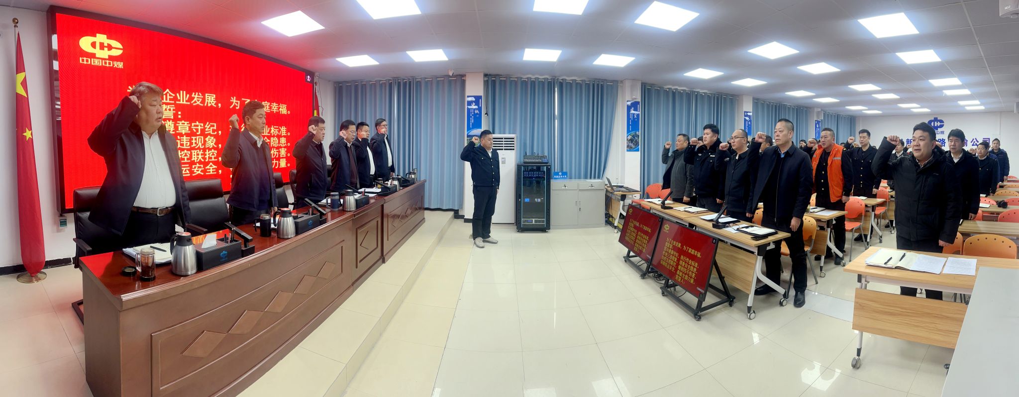 会议首先集中传达学习了近期上级重要精神和安全工作部署,包括习近平总书记近期对中央企业工作作出的重要指示、集团公司1月份安全生产视频会精神、新集公司1月30日安全办公会精神,并节选学习了《安全生产法》相关条款,以及“三违”治理八项举措、地面安全管理“36条”和公司《“三违”综合治理管理办法》等规章制度。与会人员共同观看了安全警示教育片,并进行了庄严的安全宣誓,进一步强化了全员的安全红线意识与法治观念。