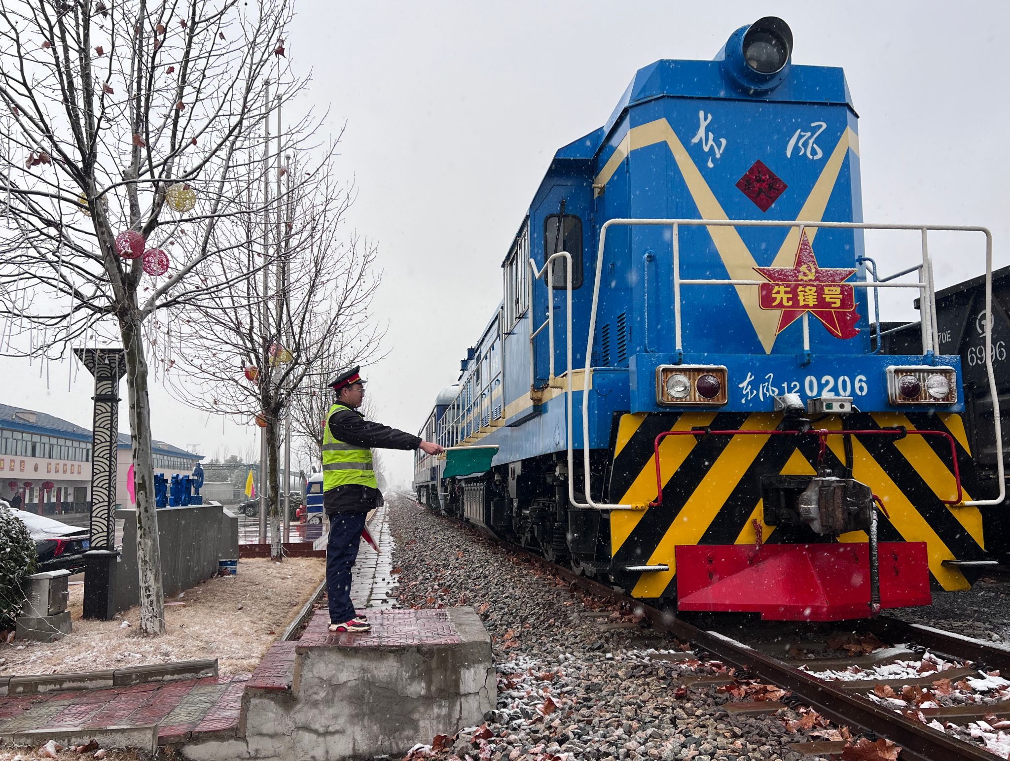 除夕清晨,东风8B型0206号机车驾驶室内,司机王师傅和副司机小陈正执行牵引任务。车外寒风凛冽,车内他们神情专注。“信号绿灯,道岔位置正确,线路空闲,可以开车。”呼唤应答,标准如常。从出乘前的全面检查,到运行中的平稳操纵、定时巡检,他们严格执行每一项作业标准。漫长的夜班,陪伴他们的是仪表的微光、电台的电流声和车窗外偶尔划过的烟花。“虽然不能和家人看春晚、守岁,但握着闸把,把一列列‘乌金’安全送到电厂,点亮万家灯火,我觉得这个年过得特别有意义,心里特别暖和。”王师傅朴实的话语,道出了所有机车乘务员的心声。