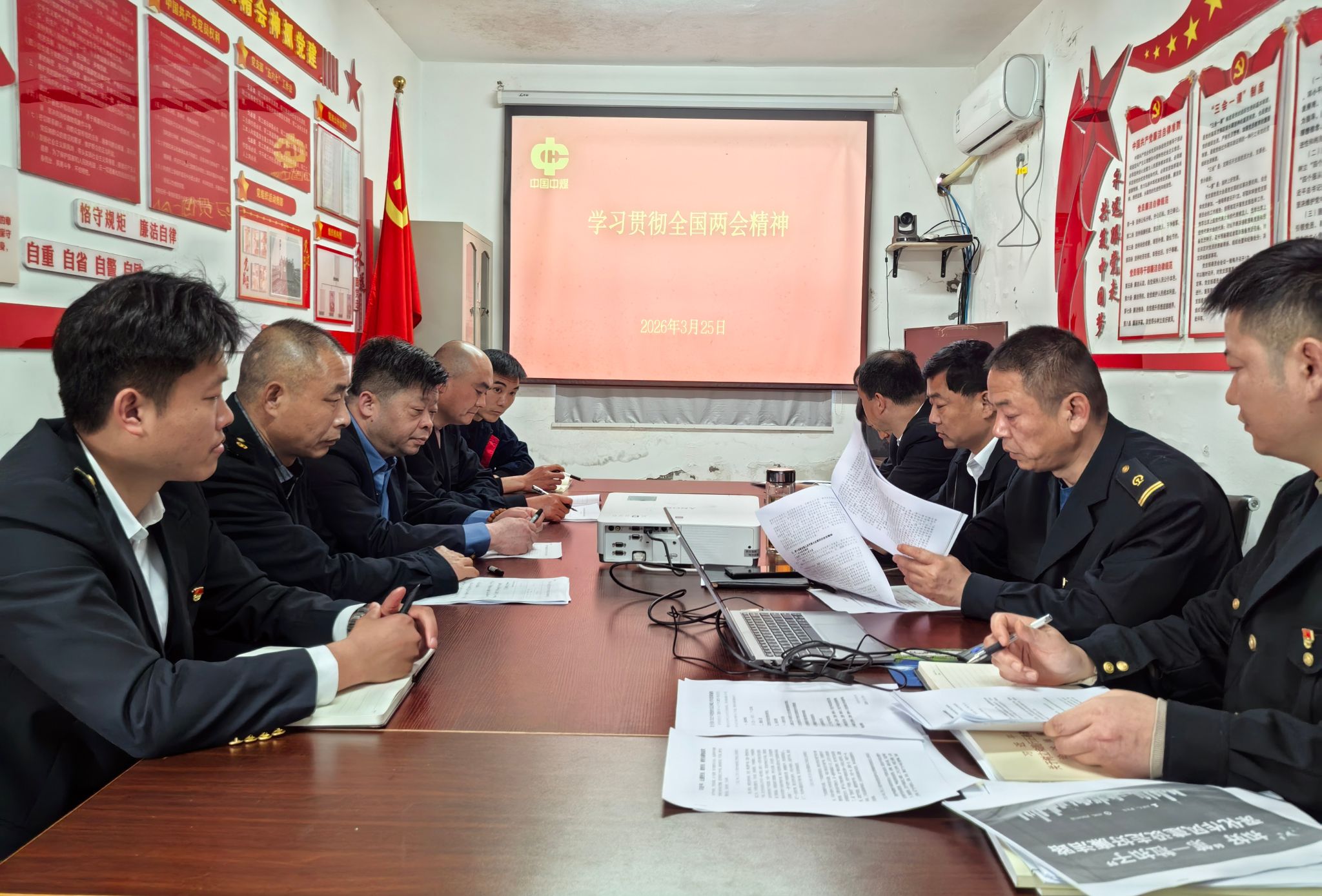 为进一步将全体员工的思想和行动统一到党中央决策部署上来,近日,铁路运输公司口孜东矿站组织全体党员开展全国两会精神专题学习,围绕“学习贯彻全国两会精神,筑牢安全发展根基”主题,迅速掀起学习热潮,凝聚奋进合力。