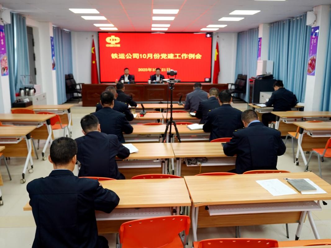 10月21日,铁运公司在一楼多功能会议室召开党建工作例会,组织开展政治理论学习,传达上级重要会议及文件精神,听取基层党建工作汇报,并就下一阶段党建重点任务进行部署。会议由公司党委书记、副经理童守军主持,铁运公司工会主席、副经理季前进出席会议并发表讲话。各党支部书记、委员,职能科室及基层矿站负责人参加会议。
