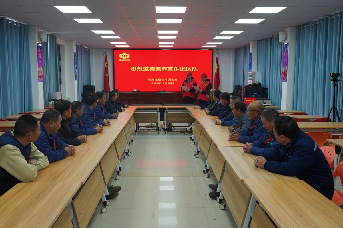 为深入推进新时代思想道德建设落地见效,进一步强化职工队伍思想建设,筑牢能源保供战斗堡垒,近日,铁运公司团支部组织团青骨干走进铁专线治理项目部班前会,开展思想道德素养宣讲,旨在以思想引领行动,凝聚全员共识,为“迎峰度冬”能源保供注入强劲精神动力。