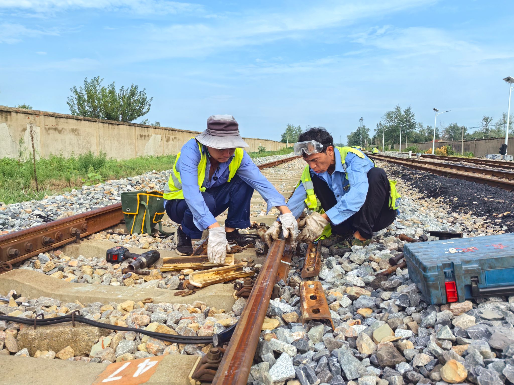 口孜东矿站工务人员以专业技能为支撑,以责任担当为指引,顶烈日、战酷暑,通过高效开展绝缘夹板更换作业,及时排除设备隐患,确保轨道电路信号传输稳定,切实为列车安全运行夯实基础。