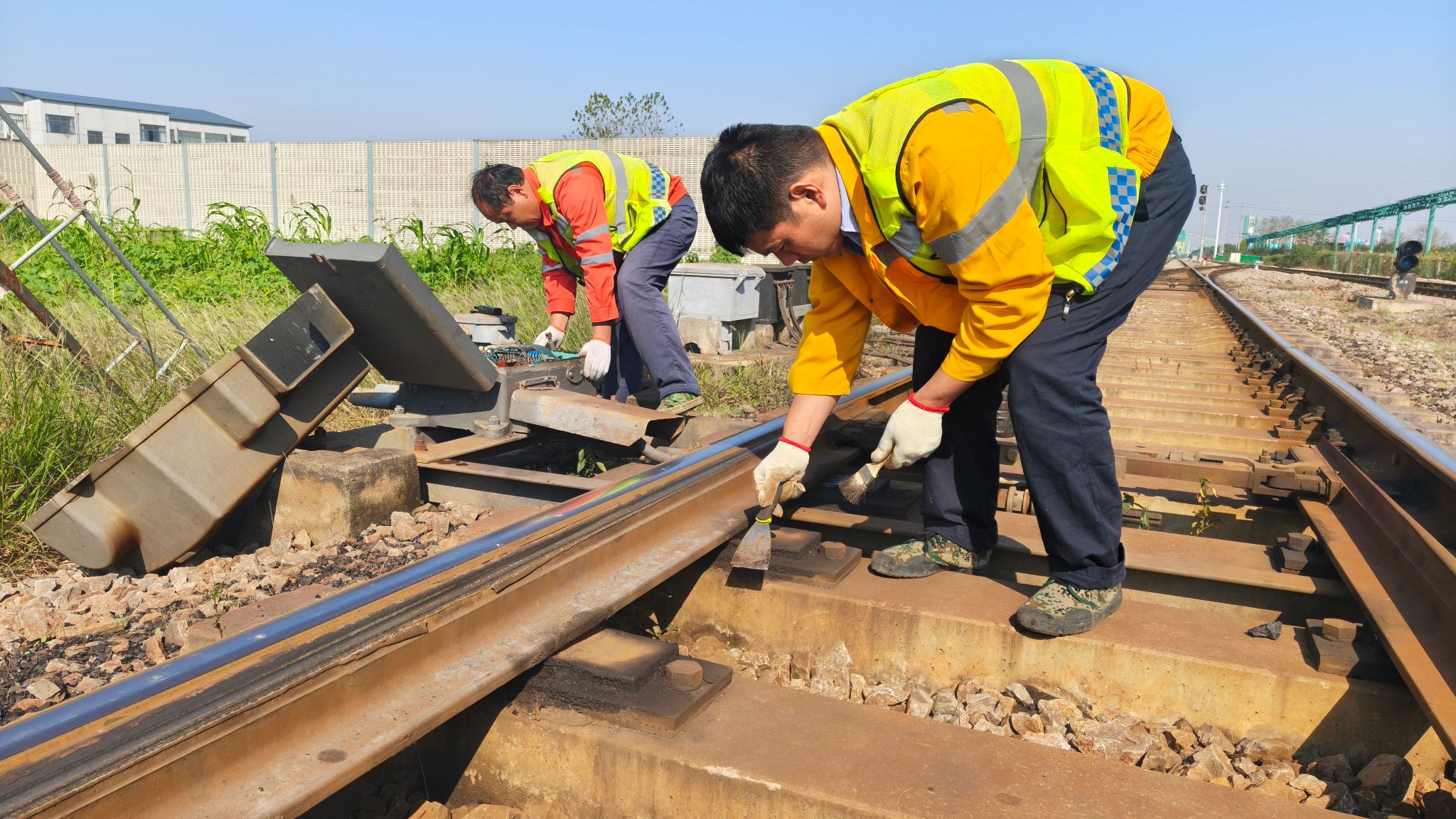 电务分信号、通信、供电三大板块同步推进秋整防寒工作。一是聚焦联锁、电源屏、轨道电路、道岔及信号机等关键设备,逐一进行细致检查,及时更换老化、不良器件,进一步强化设备防尘、防潮及防雷防护措施,确保信号传输精准稳定;二是测试光电缆、电源设备及视频监控系统,有序开展蓄电池放电试验与绝缘测试,保障通信链路畅通无阻;三是对电缆终端头、灯塔、接地装置及高低压配电设备进行全面检修维护,扎实做好防鼠及消防工作,为铁路运输提供稳定可靠的电力支撑。