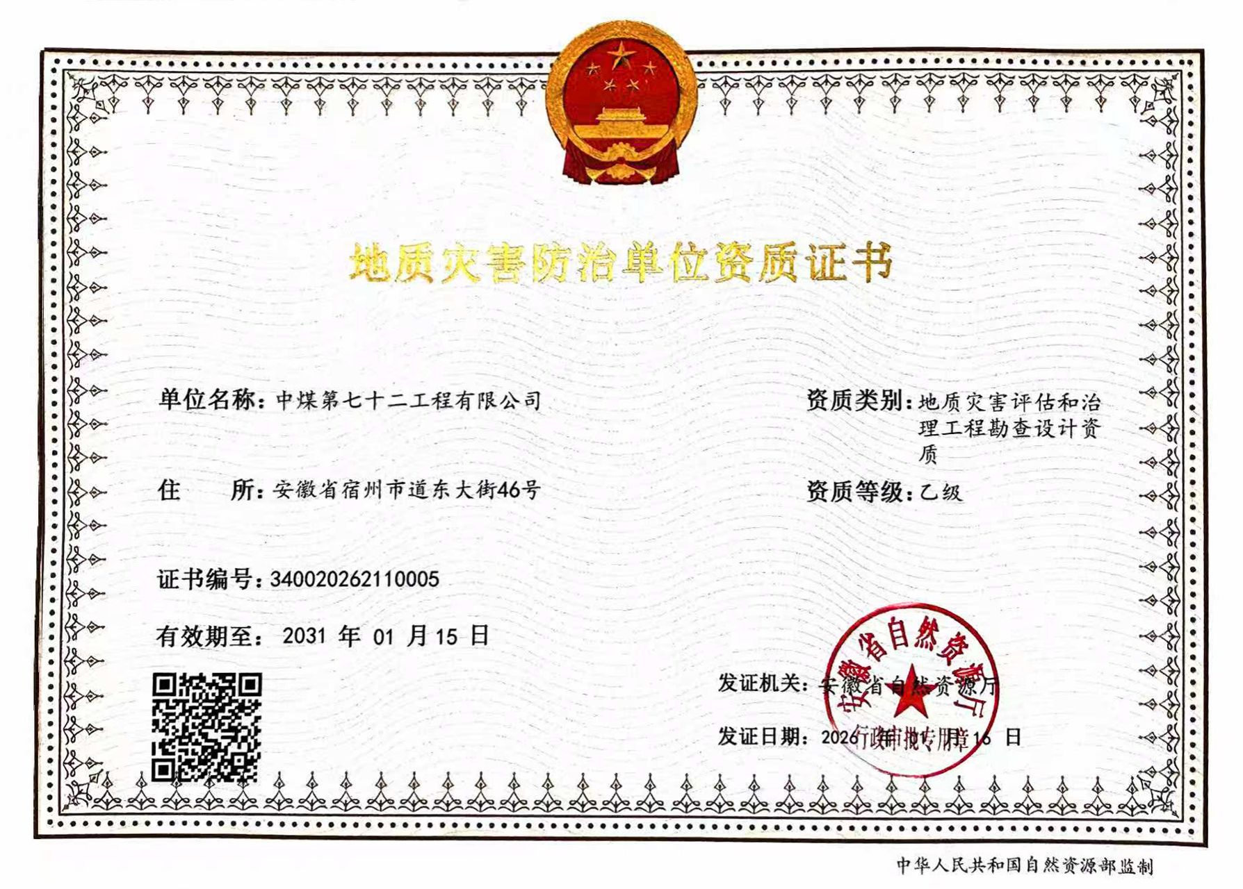 近日,公司成功取得地质灾害治理工程施工、地质灾害评估和治理工程勘查设计两项乙级资质,不仅为企业进入煤矿塌陷区治理、环境修复等新兴市场提供了准入资格,也标志着核心竞争力建设取得实质性突破。