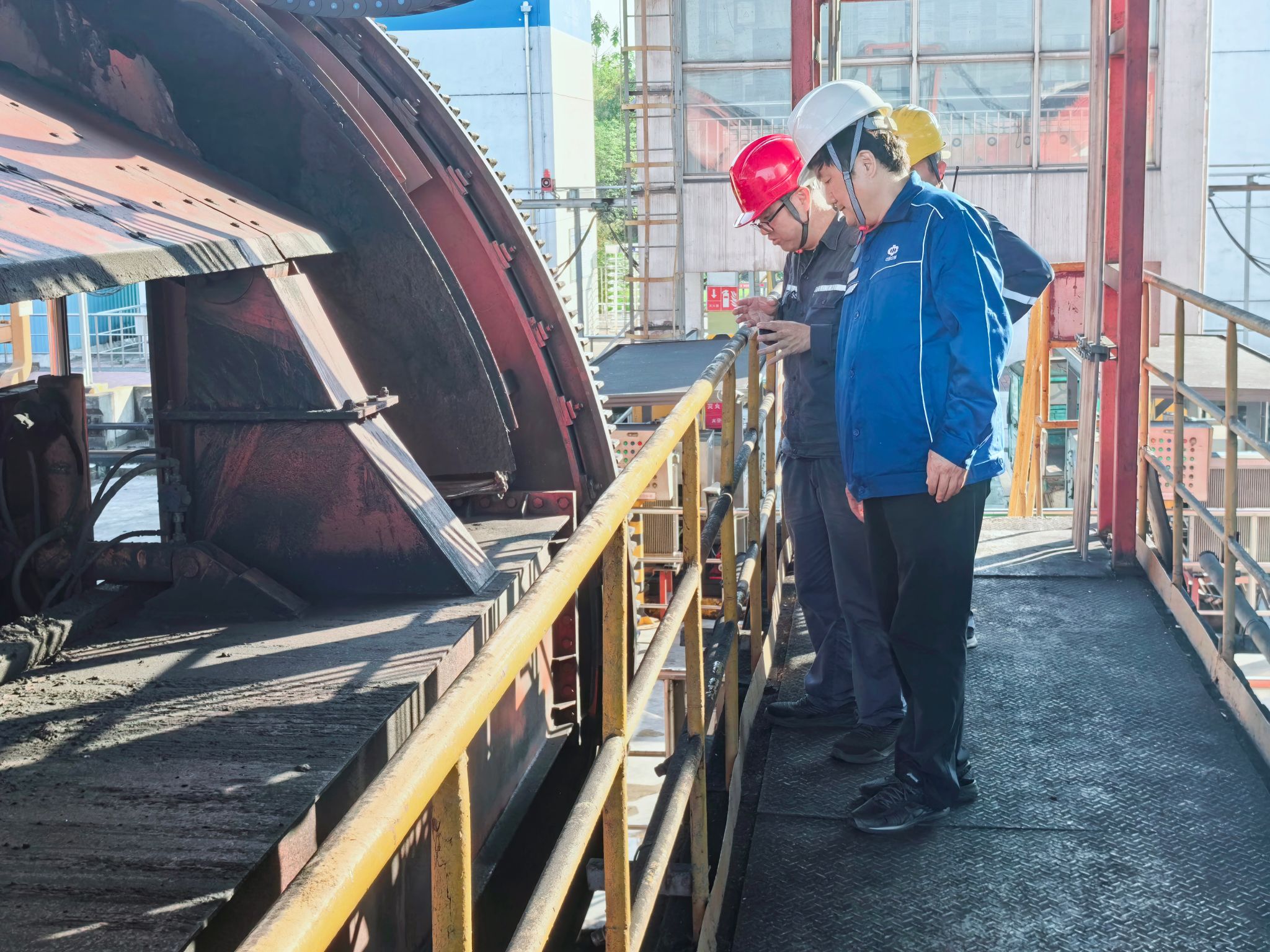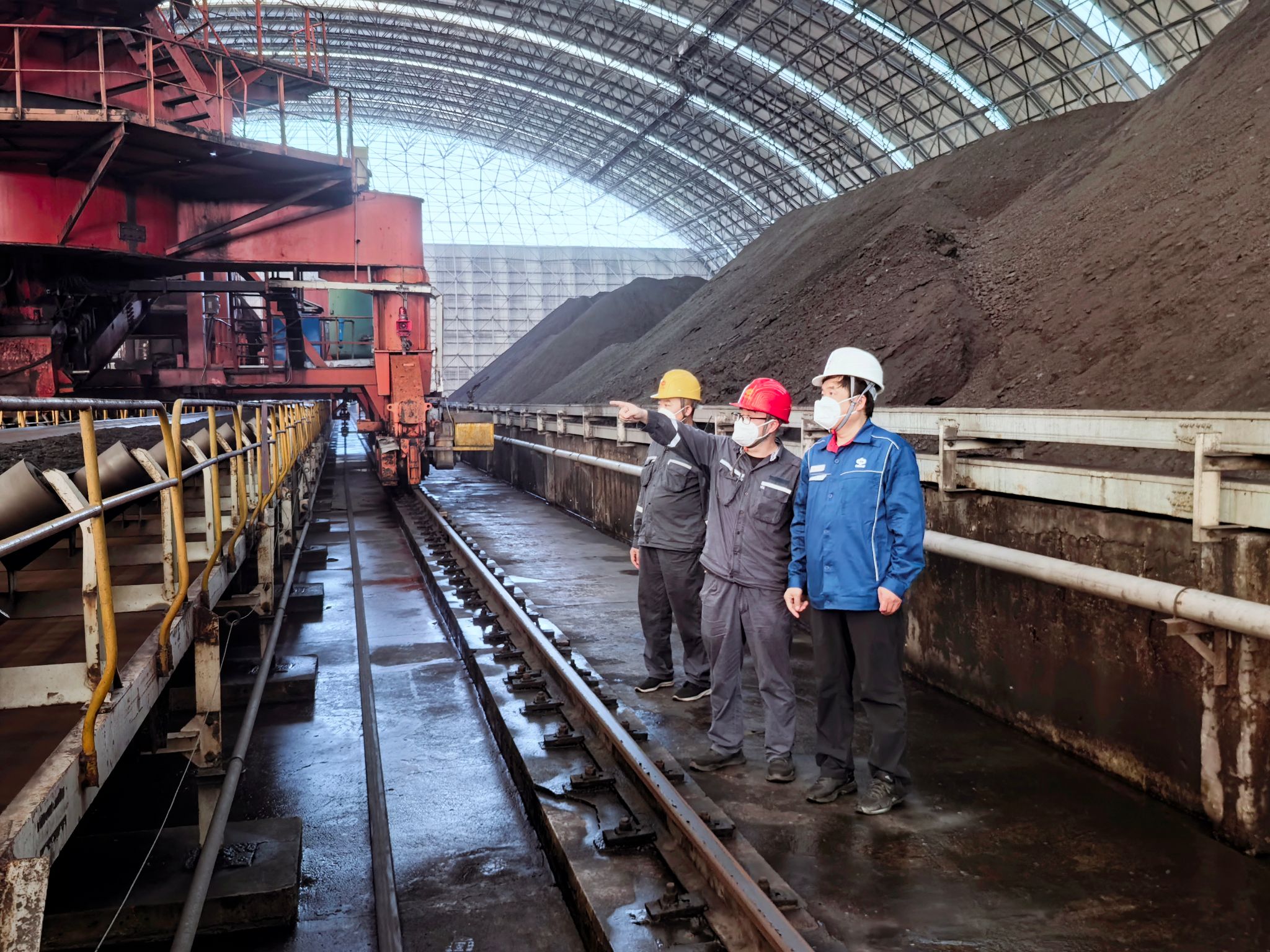 杨胜深入现场,详细听取了项目的工作汇报,仔细查看了程控室调度、翻车机卸煤、斗轮机操作、输煤皮带加仓等情况,深入了解了煤场结构、输煤运行等工作,亲切慰问了节日期间坚守在生产一线的职工,并要求: