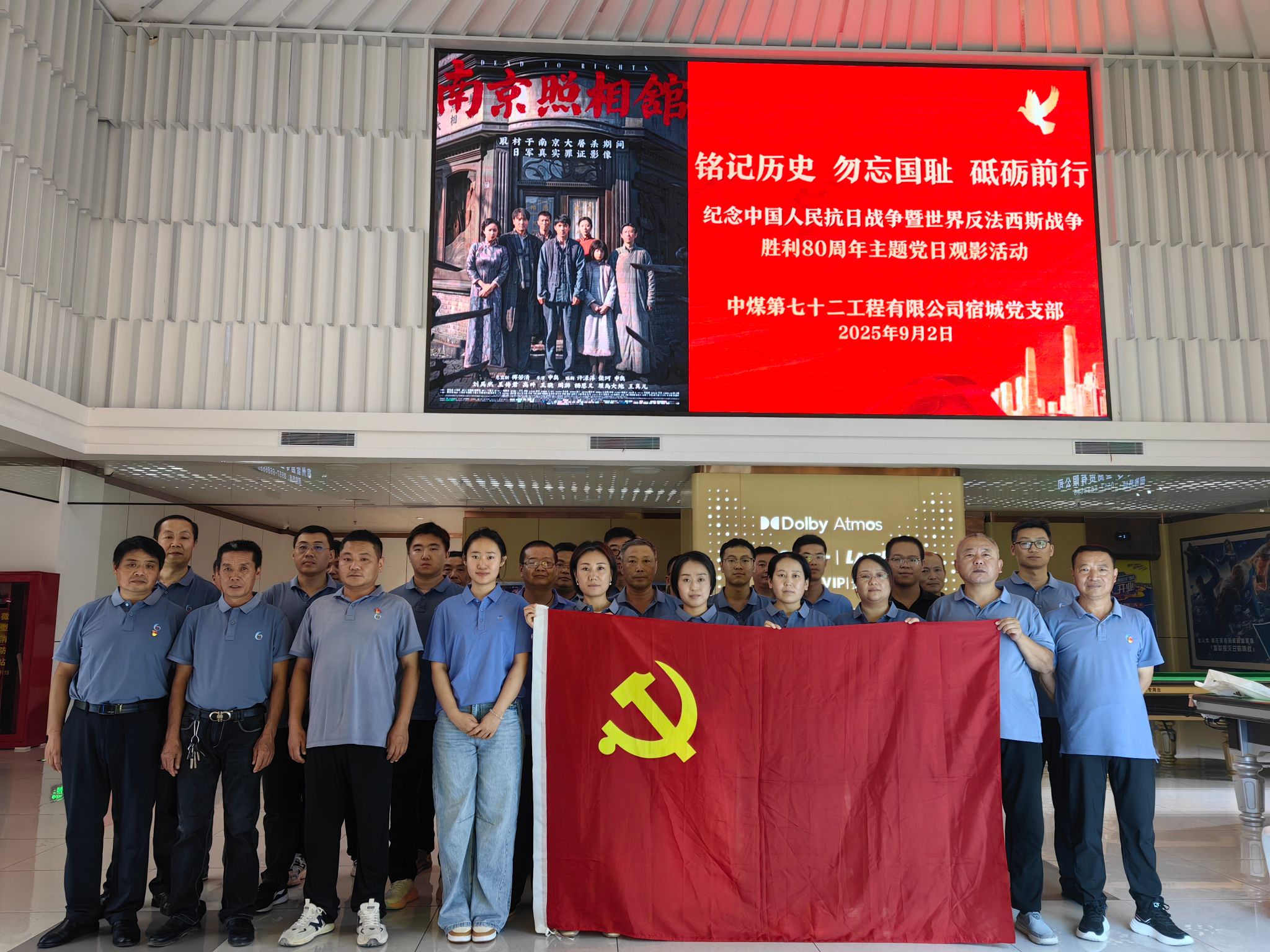 为纪念中国人民抗日战争暨世界反法西斯战争胜利80周年,进一步加强党员的爱国主义教育,激发党员的责任感与使命感,9月2日,宿城党支部组织项目部全体党员、干部职工34人开展了《南京照相馆》爱国主义观影党日活动。