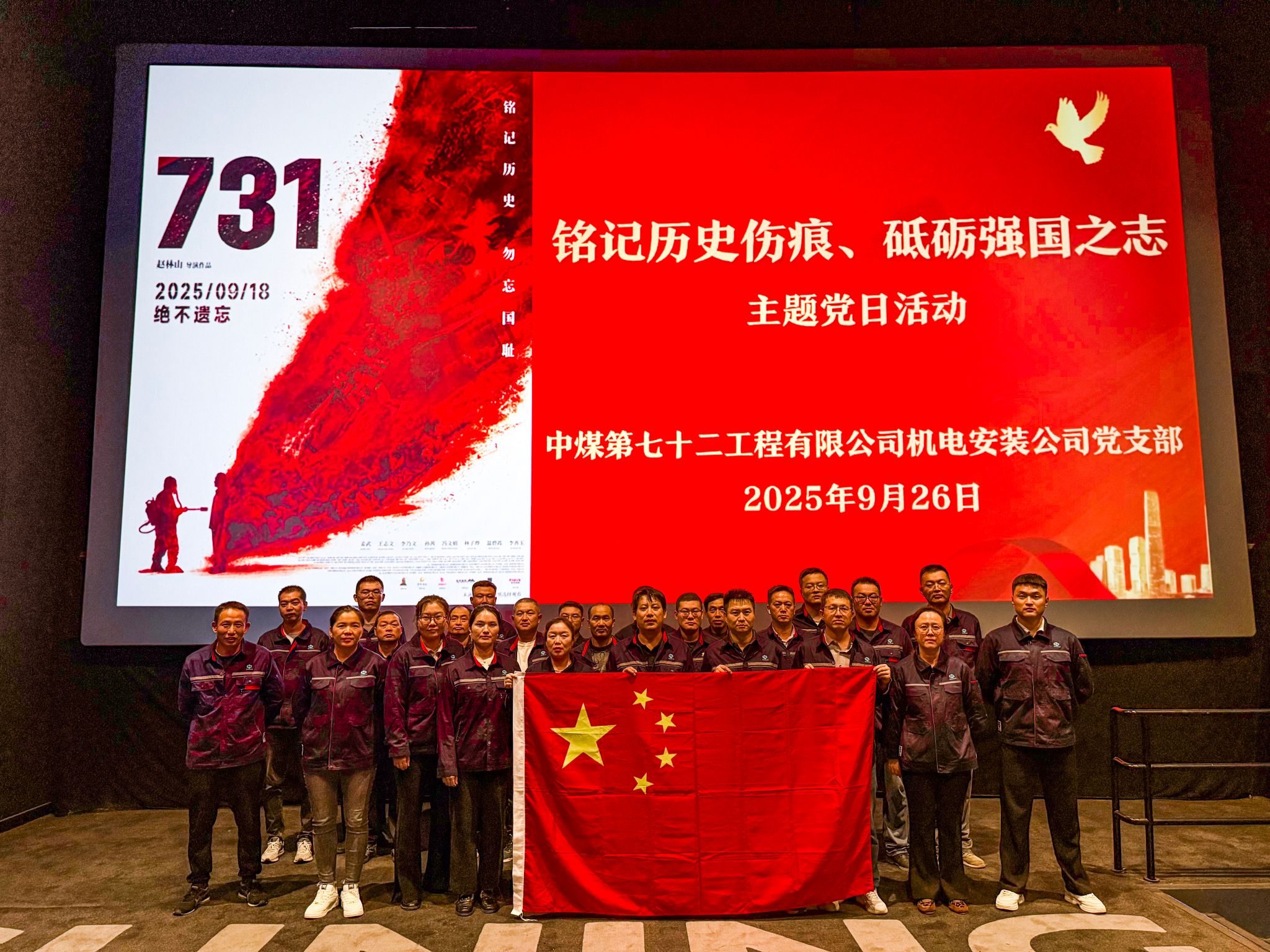 9月26日,机电公司组织全体职工开展“铭记历史伤痕砥砺强国之志”主题党日活动,集中观看爱国主义影片《731》。