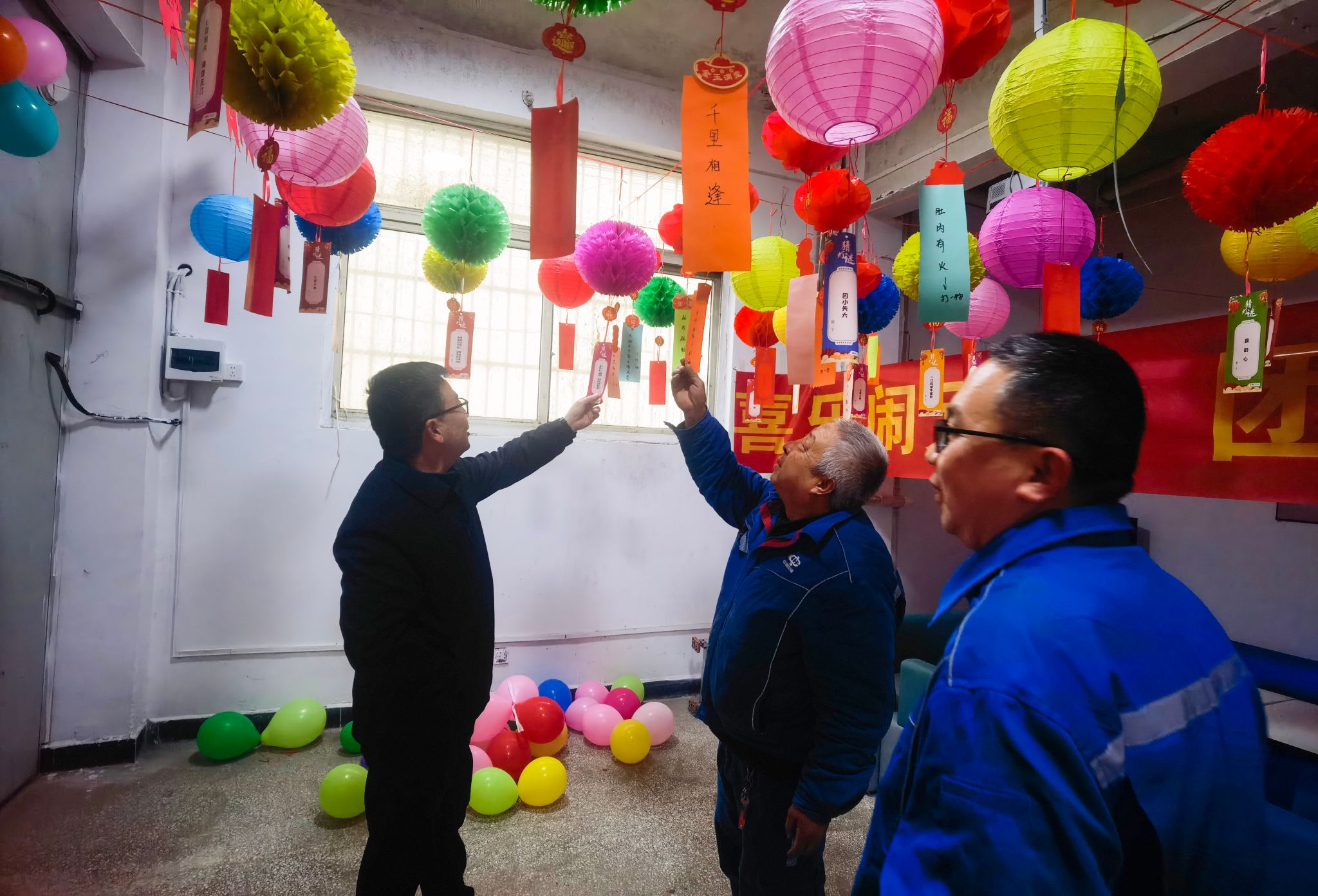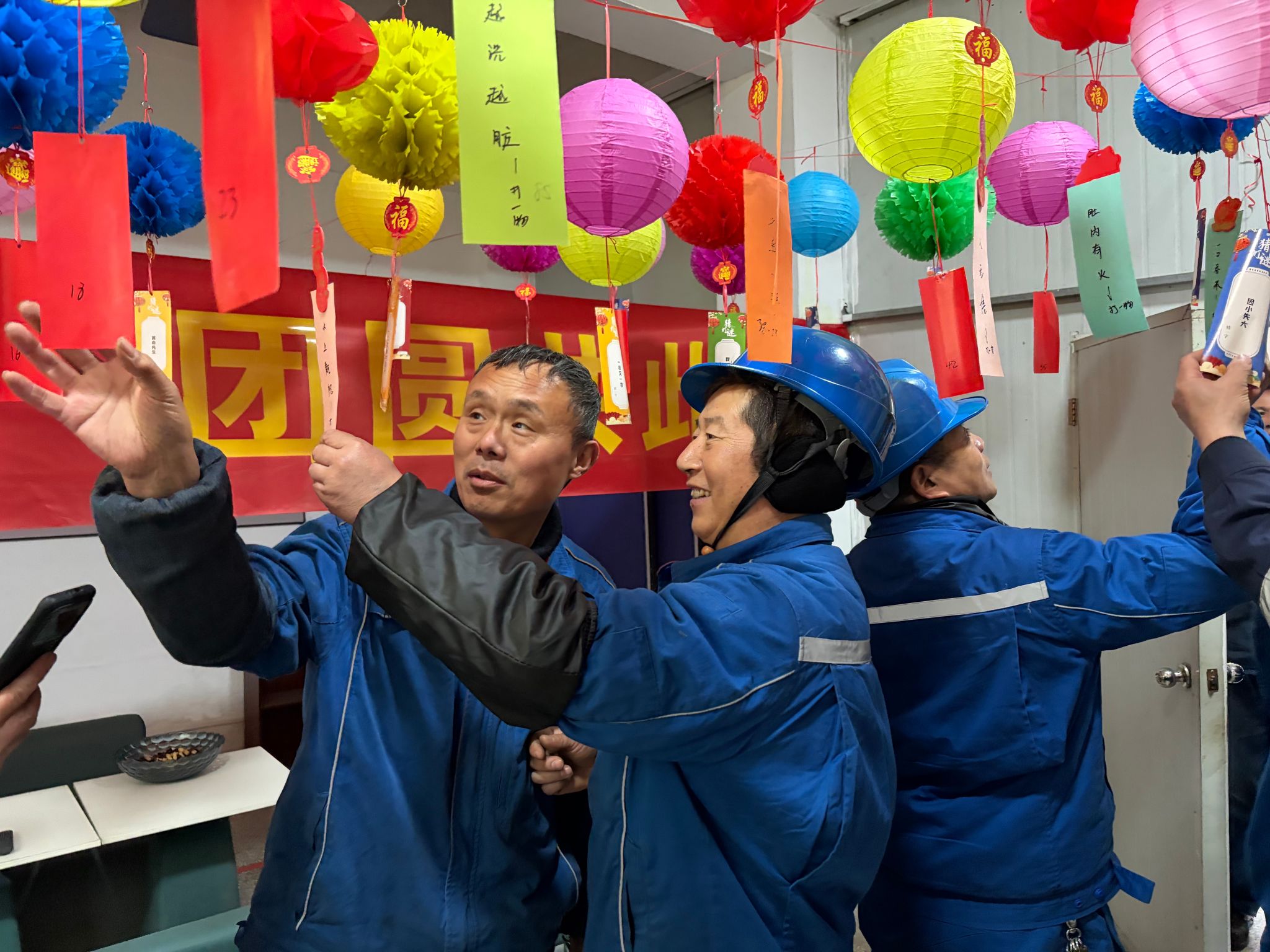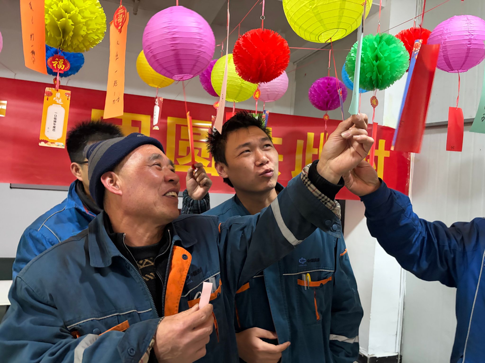 活动现场布置得格外喜庆,五彩灯笼高高悬挂,红彤彤的灯谜条随风摇曳,涵盖党建知识、安全生产、生活常识、趣味字谜等多个类别,兼具知识性与趣味性。职工们驻足灯谜前,或凝神思索,或小声探讨,或踊跃揭榜,现场欢声笑语不断,热闹非凡。